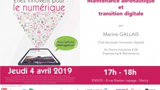 Rendez-vous le 4 avril 2019 pour une conférence unique Maintenance aéronautique et transition digitale dans le cadre de Elles Innovent pour le numérique à l'ENSGI sur Nancy !