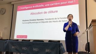 Dernier temps fort de l'après-midi, Madame Christine Hennion, Députée des Hauts-de-Seine et Présidente de la fondation Femmes@Numérique, qui a fait un Master sur les données personnelles au sein de l'ISEP, a pris la parole devant les 220 participantes.