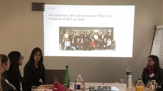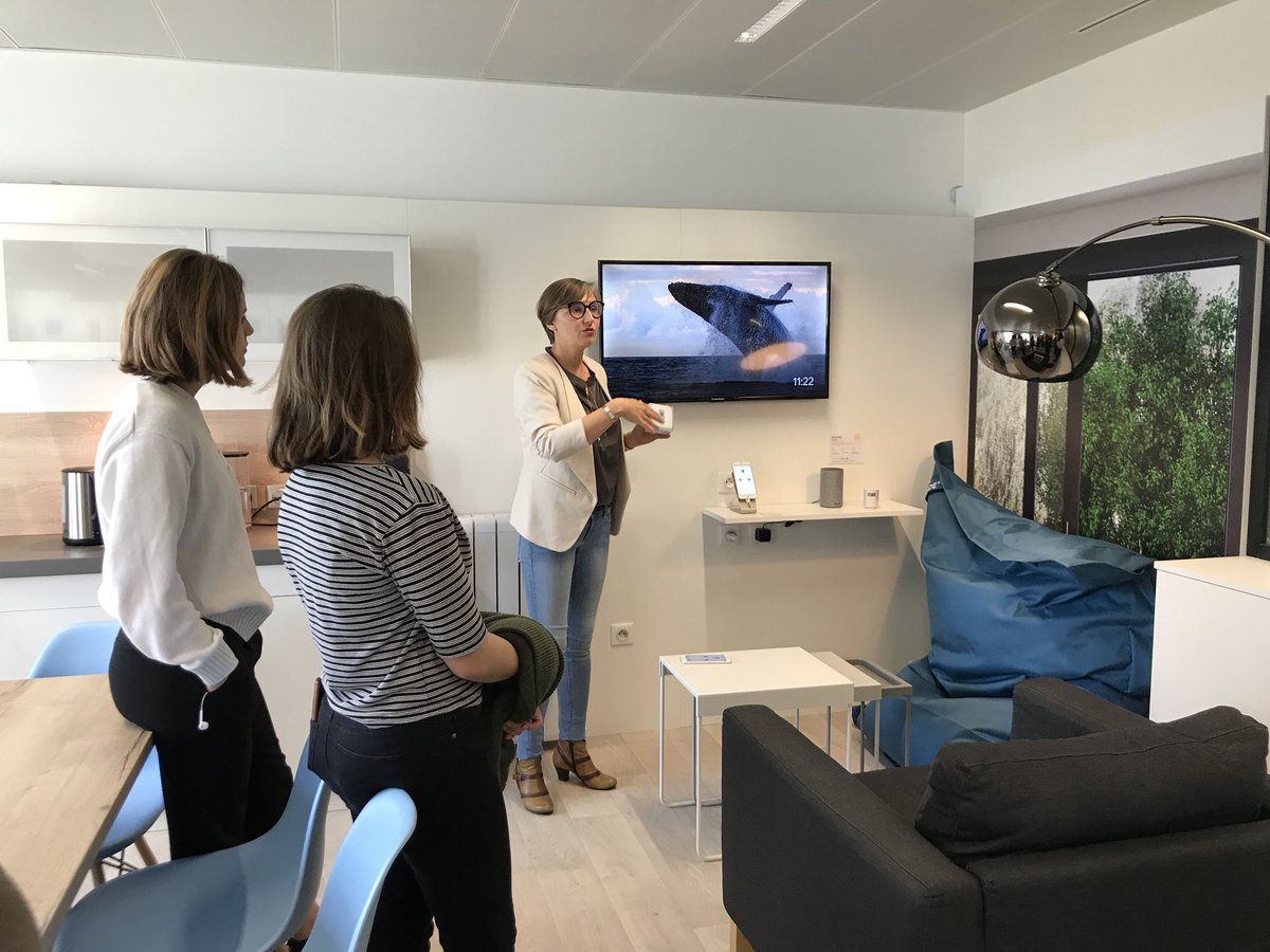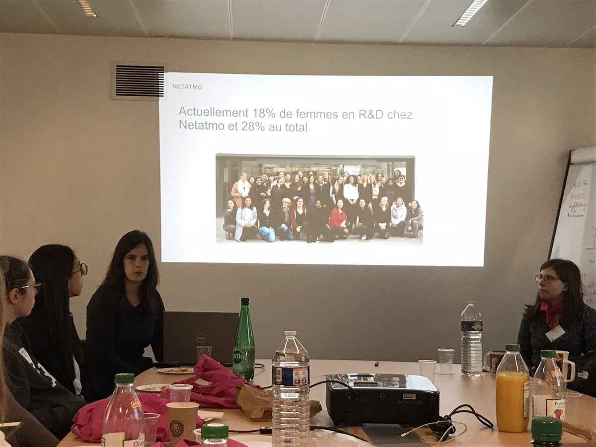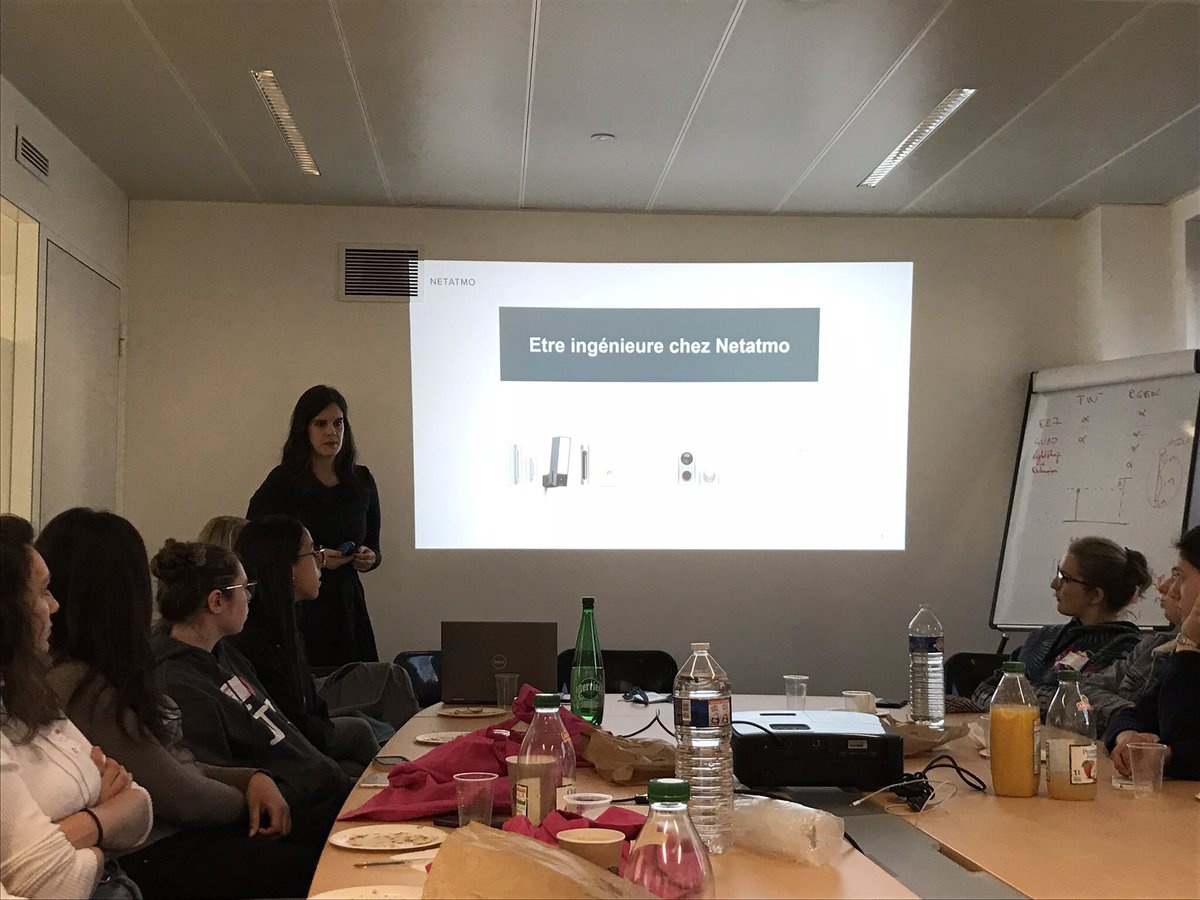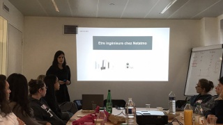 Visite chez NETATMO, avec l'équipe Marie-Paule CANI :16 lycéennes de Saint-Nicolas, à Paris, ont visité le showroom de l'entreprise Netatmo, qui conçoit et commercialise pour ses clients des produits de domotique (éclairage, caméra extérieure, prise connectée, volet roulant...). Les lycéennes ont ainsi pu en apprendre plus sur la "maison intelligente", ainsi que les métiers et parcours des marraines Netatmo, lors de tables rondes.