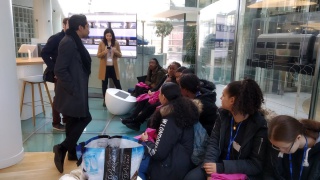 11 autres lycéennes du même établissement, accompagnées d'une dizaine d'étudiantes Elles Bougent, ont découvert le Lab Arts & Culture de Google, à Paris, présenté par Claire Foulquier Gazagnes, représentante du réseau Women AT Google. Au programme de la visite : présentation des technologies utilisées et démonstrations (réalité virtuelle, augmentée, capture en haute résolution, intelligence artificielle). Ashley a présenté les innovations développées par Google pour mettre en lumière des millions d'œuvres d'art et les applications pour les retrouver et les apprécier au mieux. L'Institut Culturel de Google développe des technologies pour aider ses partenaires à publier leurs collections en ligne et à toucher un nouveau public. Alexandra, a clôturé la visite par une présentation de son métier et son parcours.