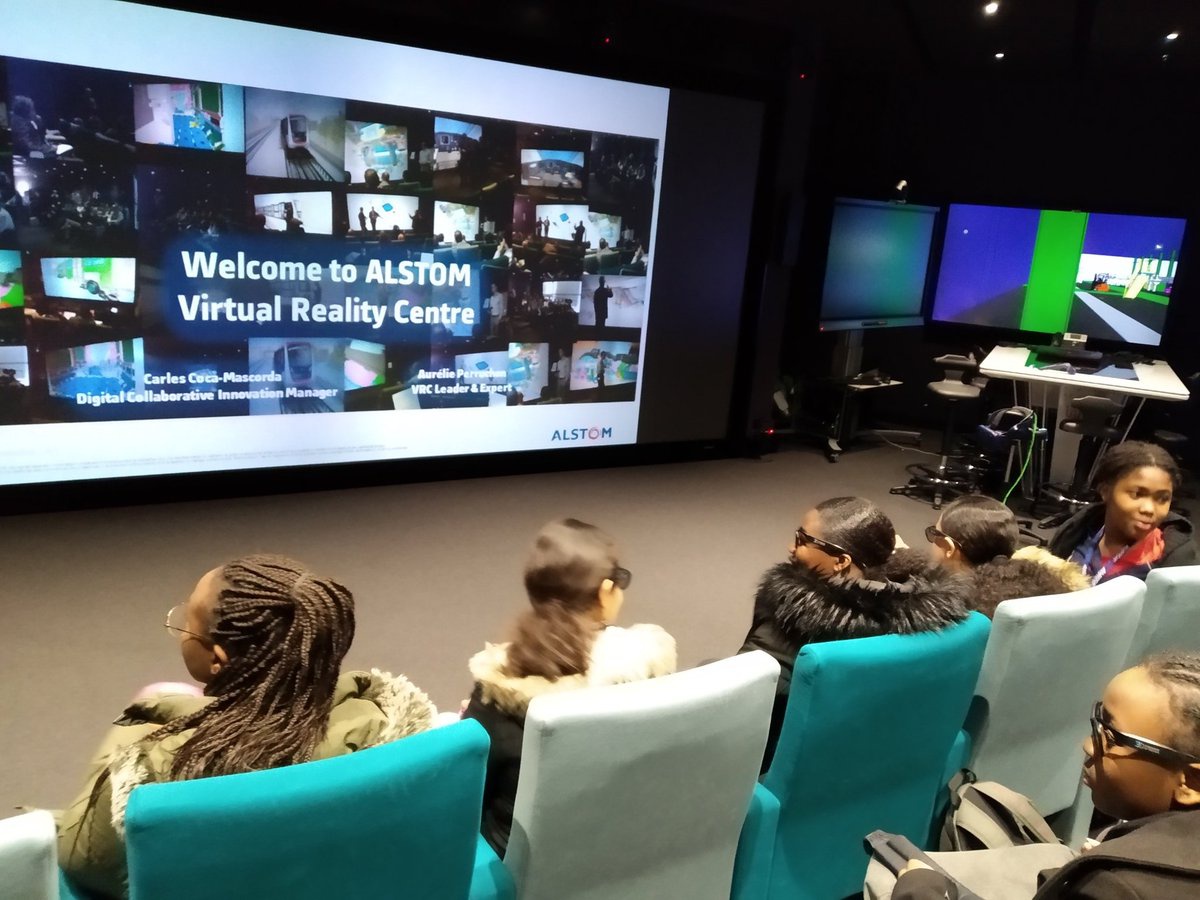 20 élèves de 3e du collège Victor Hugo de Sarcelles se sont rendues chez notre partenaire Alstom, à Saint-Ouen, où elles ont eu l'opportunité de découvrir leur impressionnant espace de réalité virtuelle, ainsi que leur showroom, guidées par nos marraines et relais de l'entreprise.