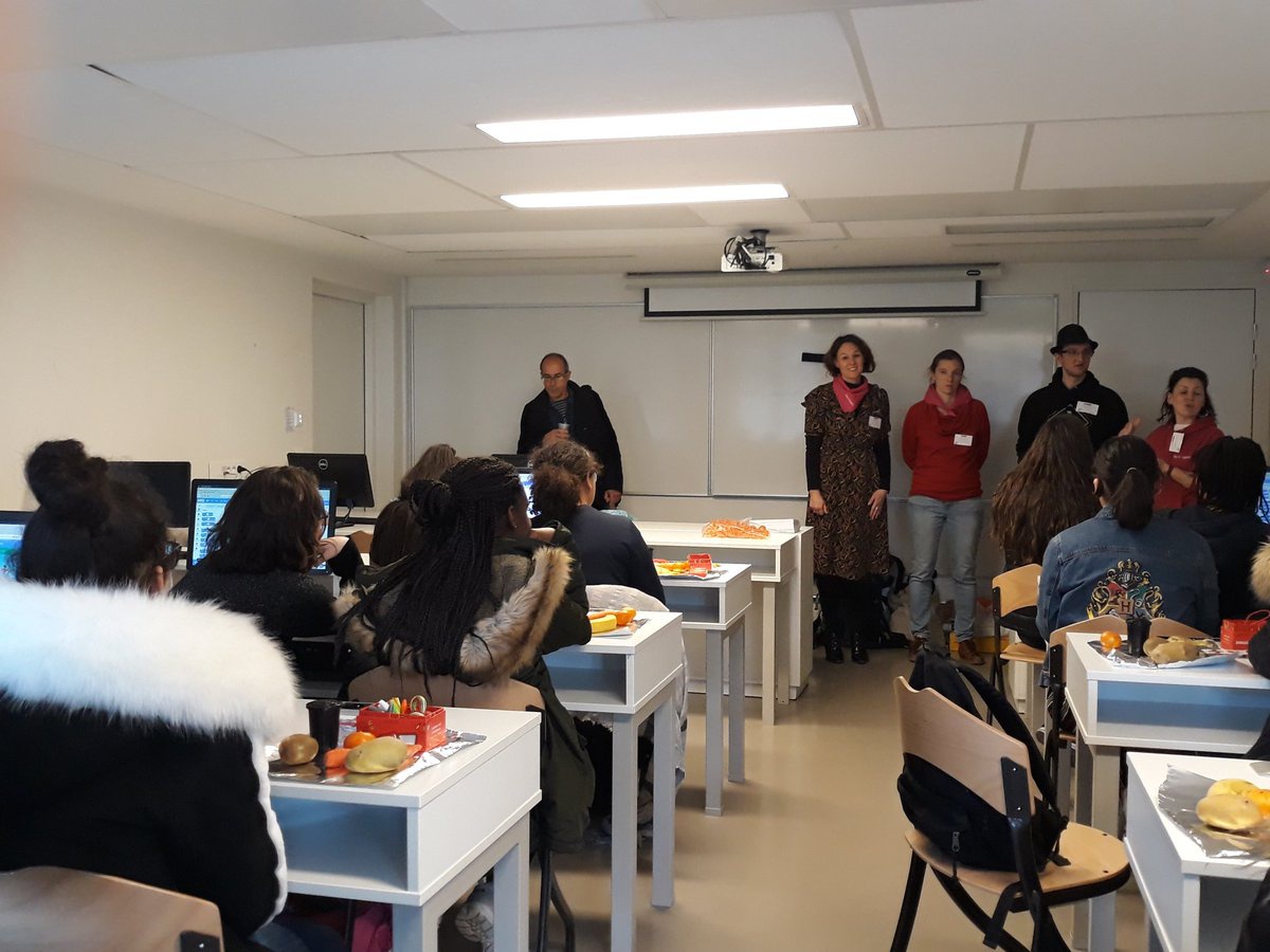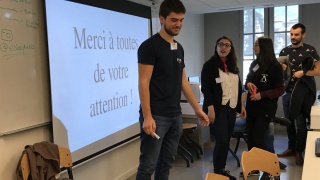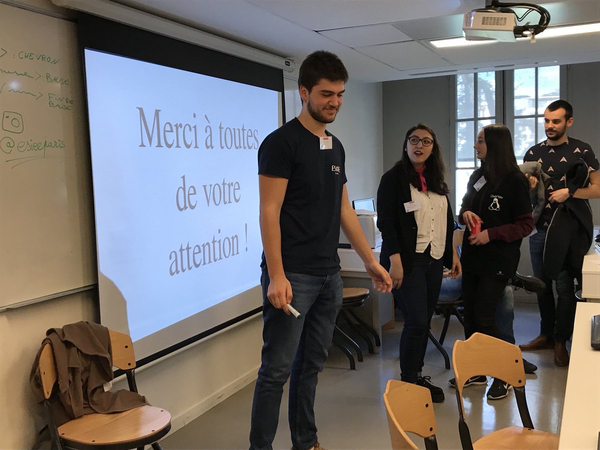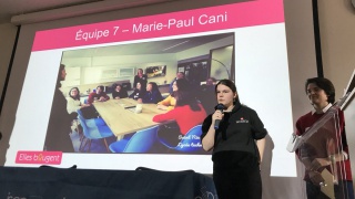 Les unes après les autres, les 9 équipes sont montées sur la scène de l'amphithéâtre, où elles ont pitché avec brio la photo qu'elles avaient prises le matin même, au sein des entreprises qu'elles ont visitées.