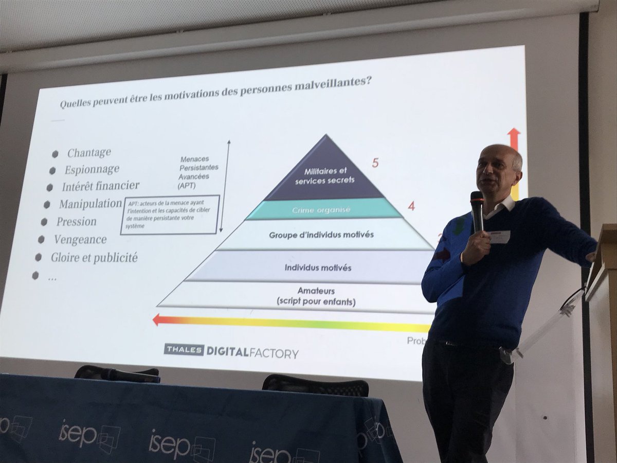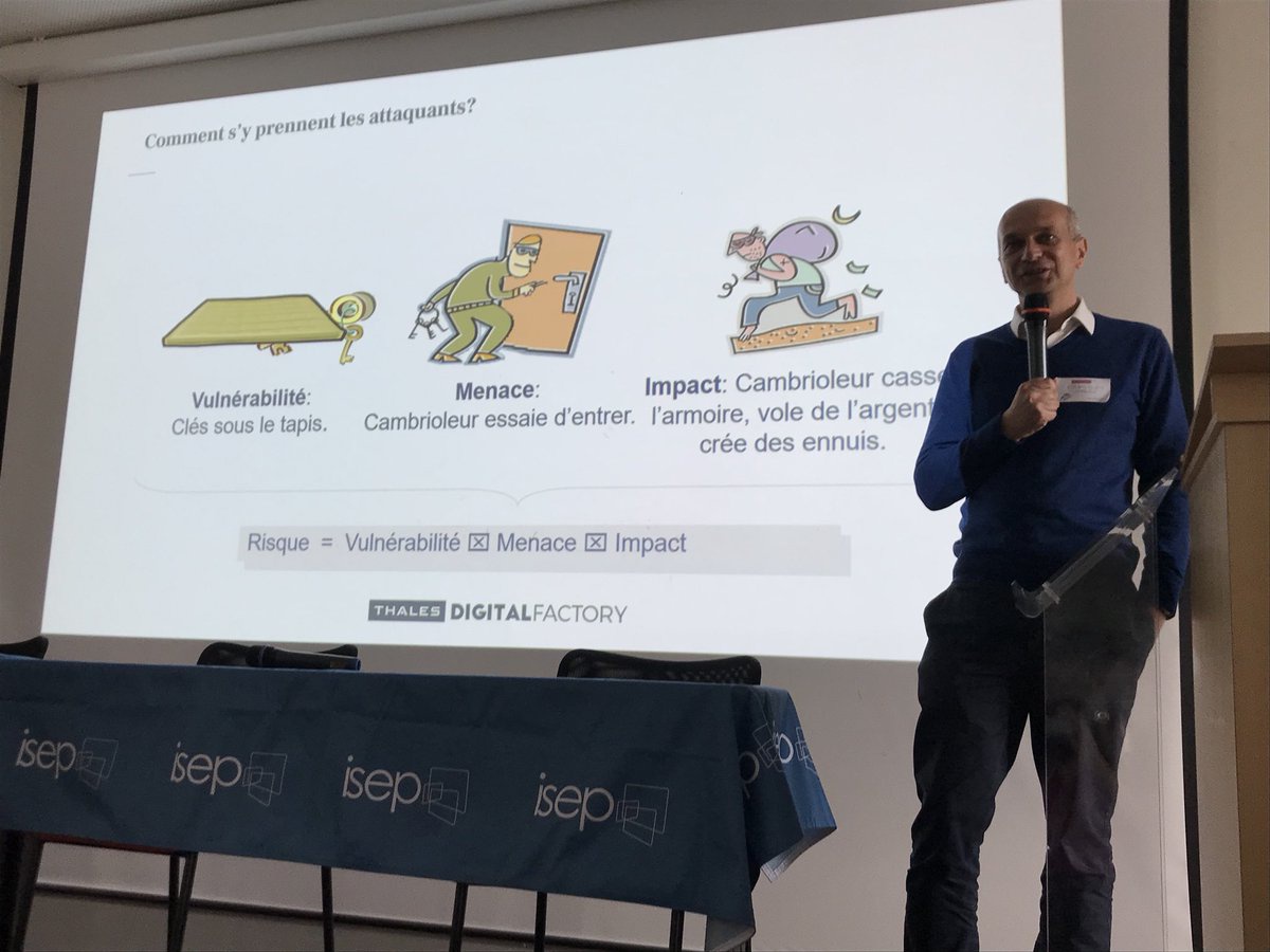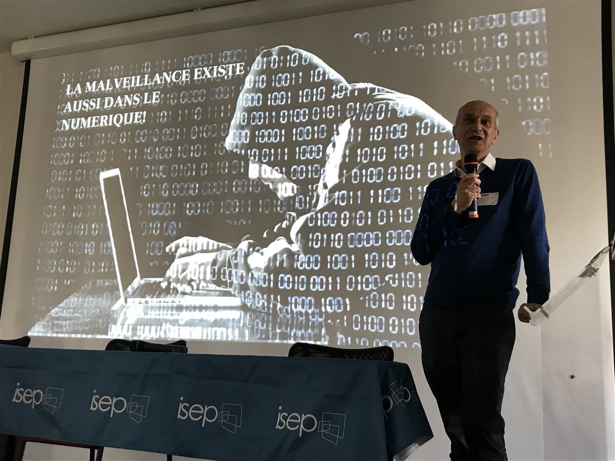 Vladimir Ksinant, expert en cybersécurité de Thales, a animé une conférence sur ce thème pour faire prendre conscience aux jeunes filles des différents degrés de danger existant sur internet, en passant par les hackers au groupe de crime organisé.