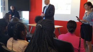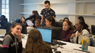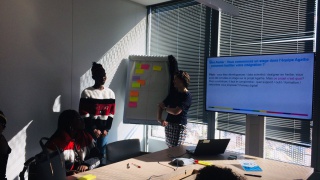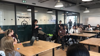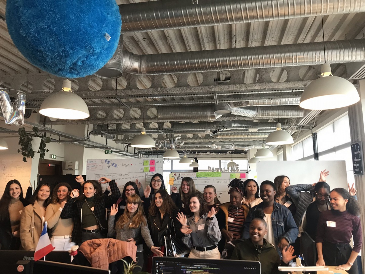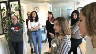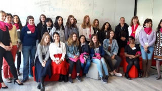 18 élèves du Lycée Descartes, à Champs-sur-Marne (77), sont allées visiter la Digital Factory de Thales en plein coeur de Paris, à l'espace de coworking Wework. L'occasion pour elles de découvrir les métiers du numérique avec les marraines Thales du jour : Développeuses, Ux designers, Data Scientist... et leurs parcours très variés ! Les lycéennes ont également pu apprendre les méthodes dites « agiles » et le travail en équipes appelées « squad ».