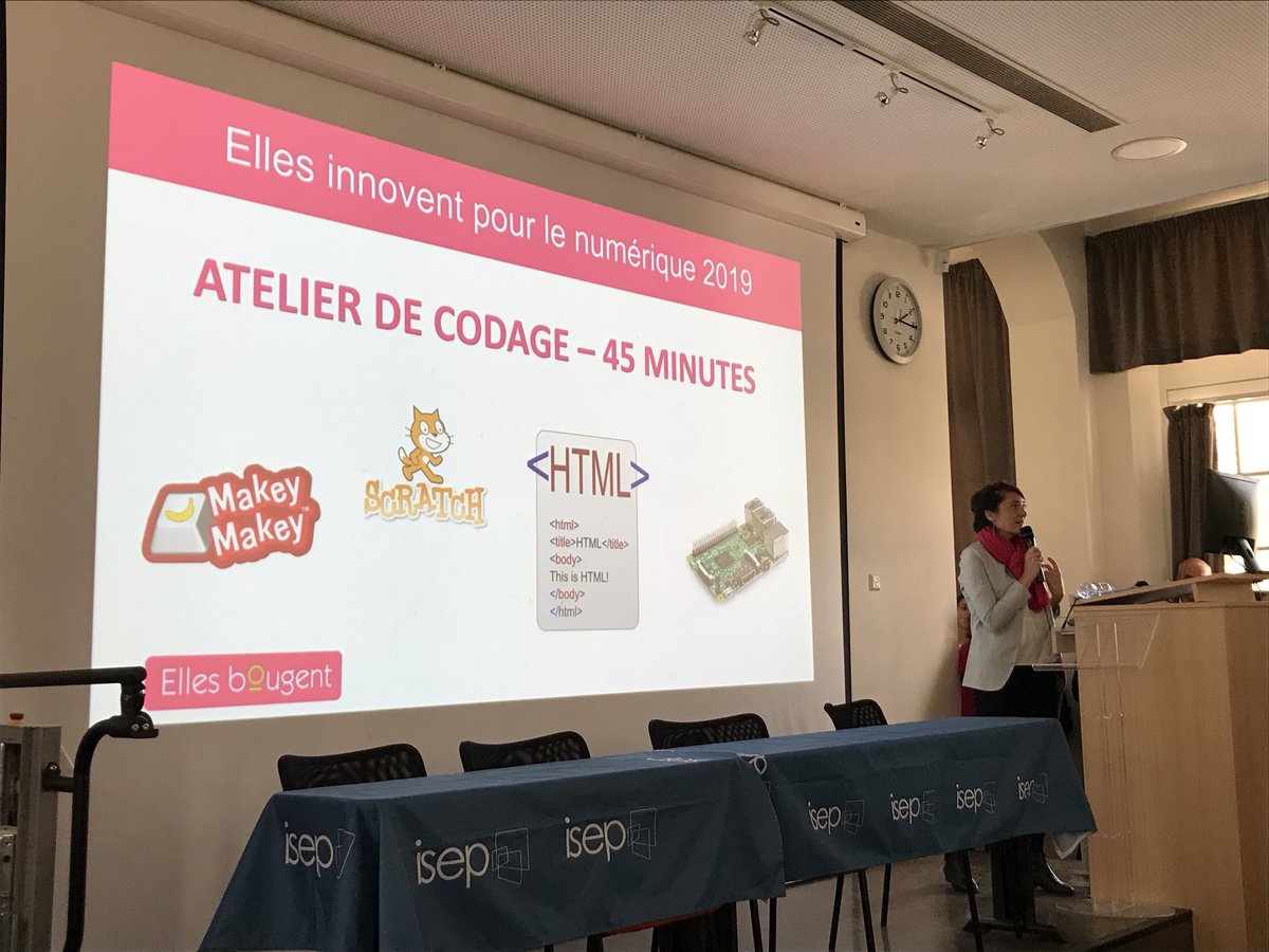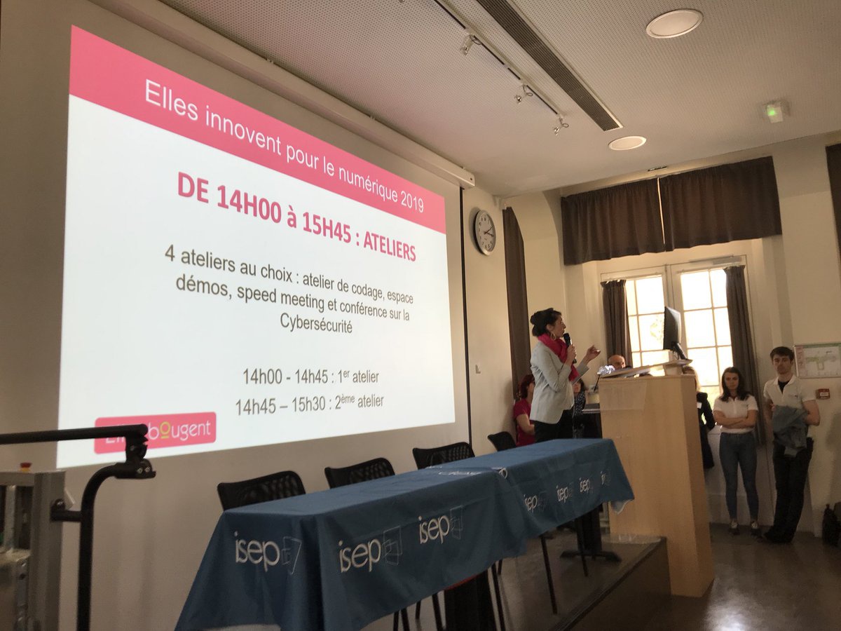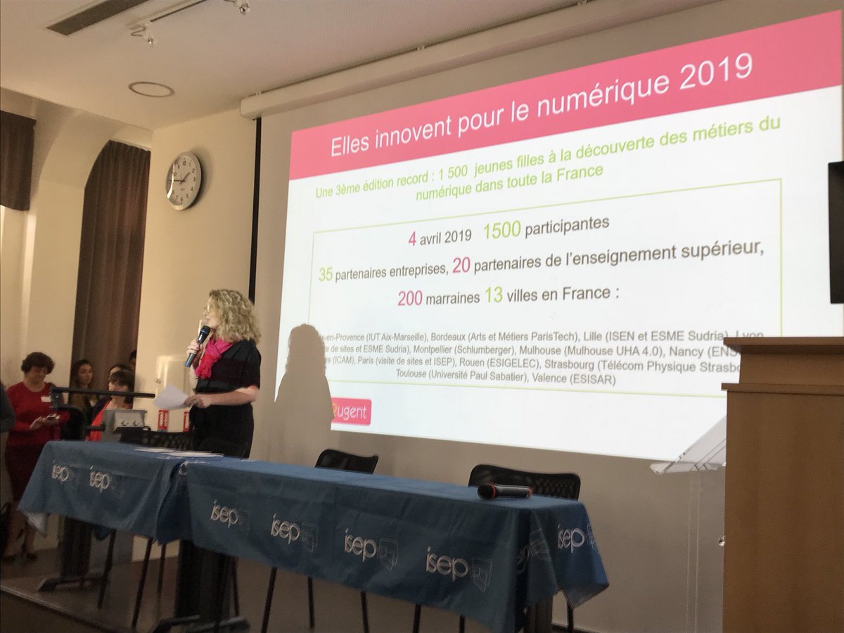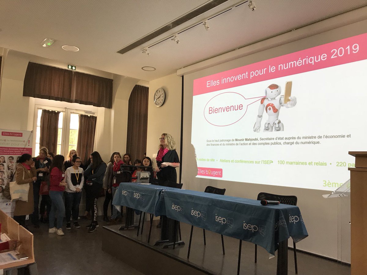 Toutes les participantes se sont donné rendez-vous à l'ISEP, l'école d'ingénieurs du numérique, située à Issy-les-Moulineaux. Sabine Lunel-Suzanne, Directrice du développement social et de la Formation chez ENGIE et Vice-Présidente de l'association ELLES BOUGENT, a alors présenté le programme de l'après-midi, tout en rappelant que l'événement "Elles innovent pour le Numérique" se déroulait sur 12 autres sites en simultané !