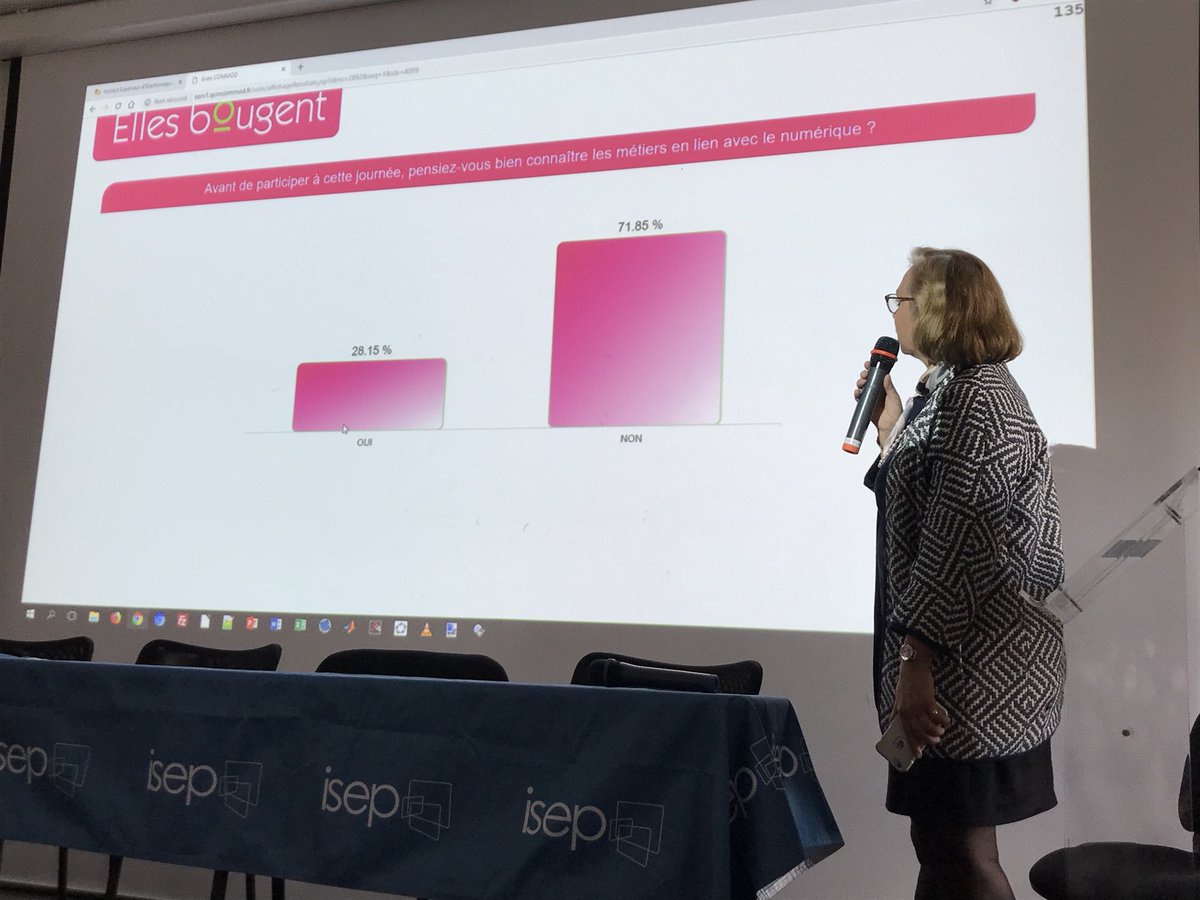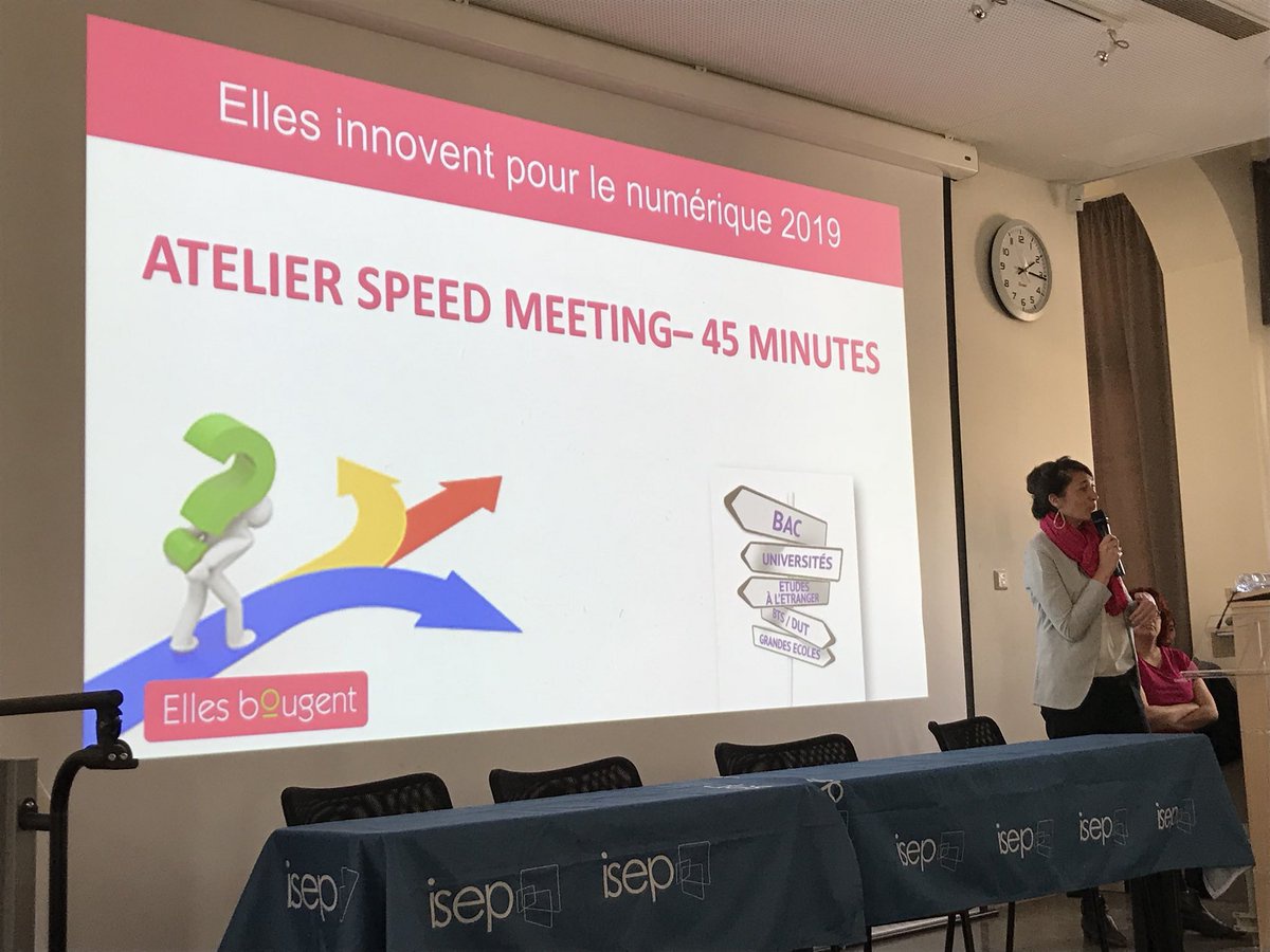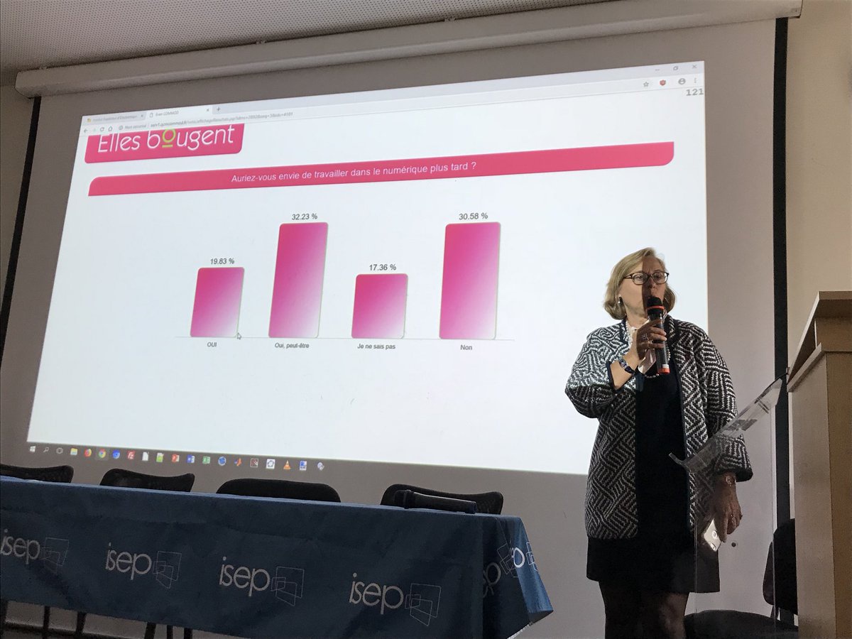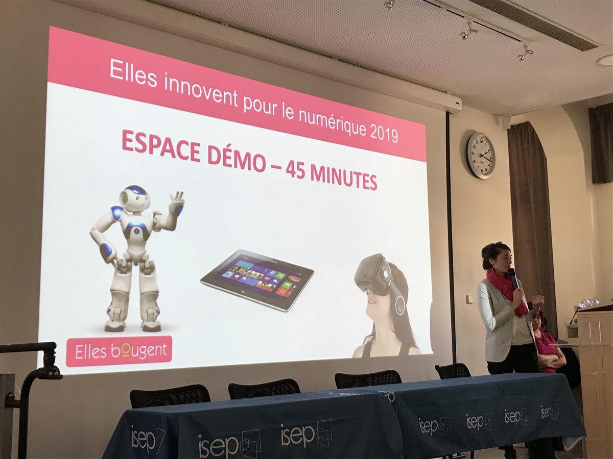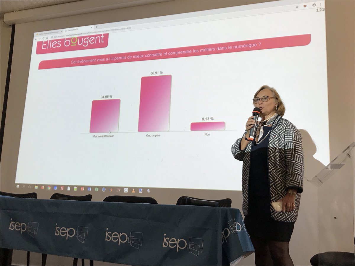 Toutes les participantes se sont donné rendez-vous à l'ISEP, l'école d'ingénieurs du numérique, située à Issy-les-Moulineaux. Sabine Lunel-Suzanne, Directrice du développement social et de la Formation chez ENGIE et Vice-Présidente de l'association ELLES BOUGENT, a alors présenté le programme de l'après-midi, tout en rappelant que l'événement "Elles innovent pour le Numérique" se déroulait sur 12 autres sites en simultané !