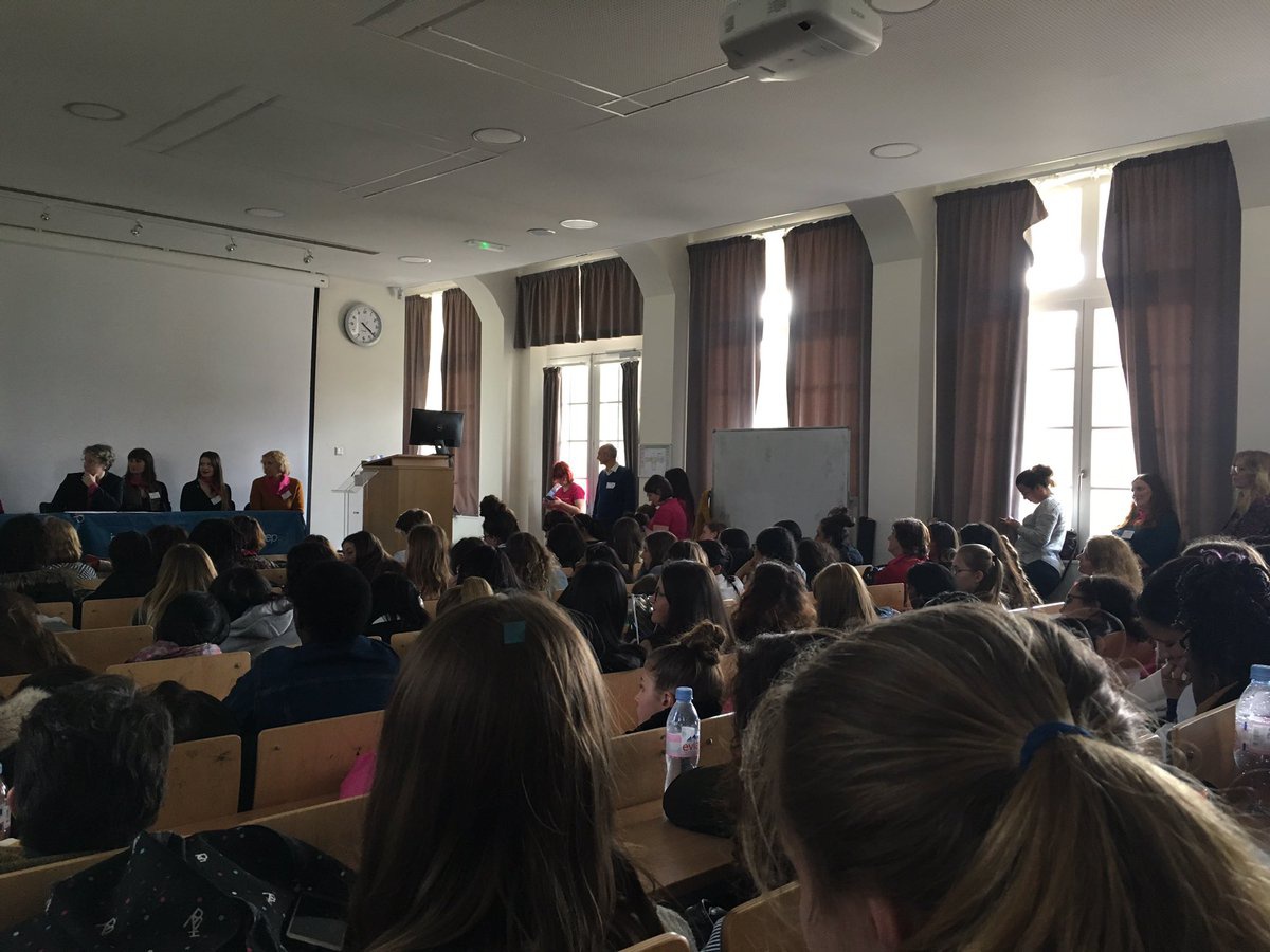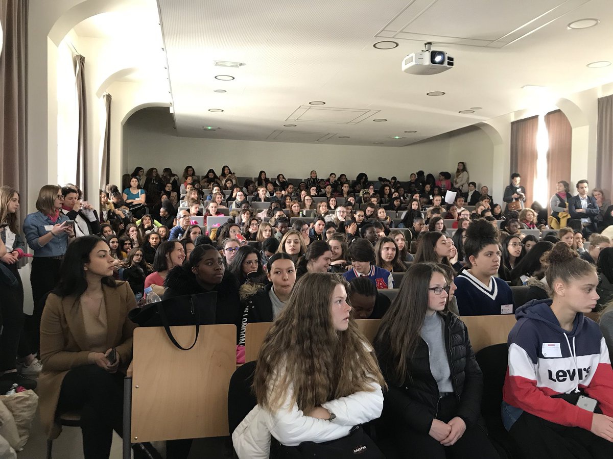 Meri également aux lycéennes des établissements scolaires participants : le collège Victor Hugo, le Collège Pierre Curie de Goussainville, le collège Nicolas Fouquet, le collège et le lycée de Poissy, le lycée Descartes de Champs-sur-Marne (77), le lycée Charlemagne de Paris, le lycée de Saint-Nicolas à Paris et le lycée René Cassin d'Arpajon (91).