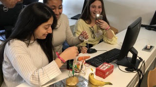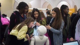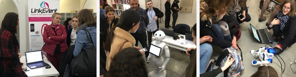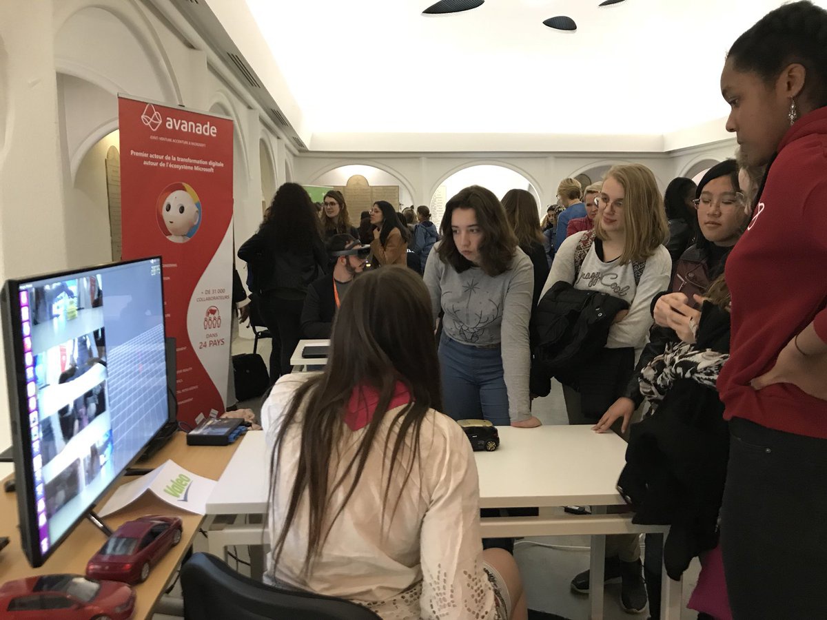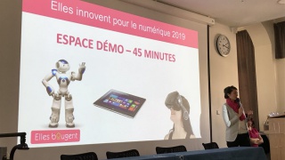 En déambulant au sein de l'espace démo, les collégiennes, lycéennes et étudiantes ont échangé avec les robots Pepper et Nao, qui attiraient tous les regards ! Elles ont aussi pu tester des casques de réalité virtuelle (souvent accompagné de quelques frayeurs pour certaines participantes !), une tablette qui devine son âge, une guitare électrique, un drone stabilisé et pollinisateur, ou encore des caméras intégrées sur des voitures miniatures…