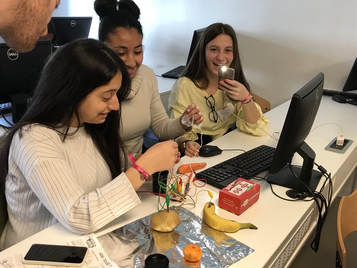 Tout au long de la journée, les jeunes filles, réparties en équipes au nom de femmes scientifiques emblématiques, ont pu découvrir les métiers et carrières liés au numérique, grâce aux échanges avec les marraines et les relais présent.e.s, ainsi qu'aux différentes activités organisées : concours photo, tables rondes, espace démos, speed-meetings, conférence sur la cybersécurité et ateliers de codage.