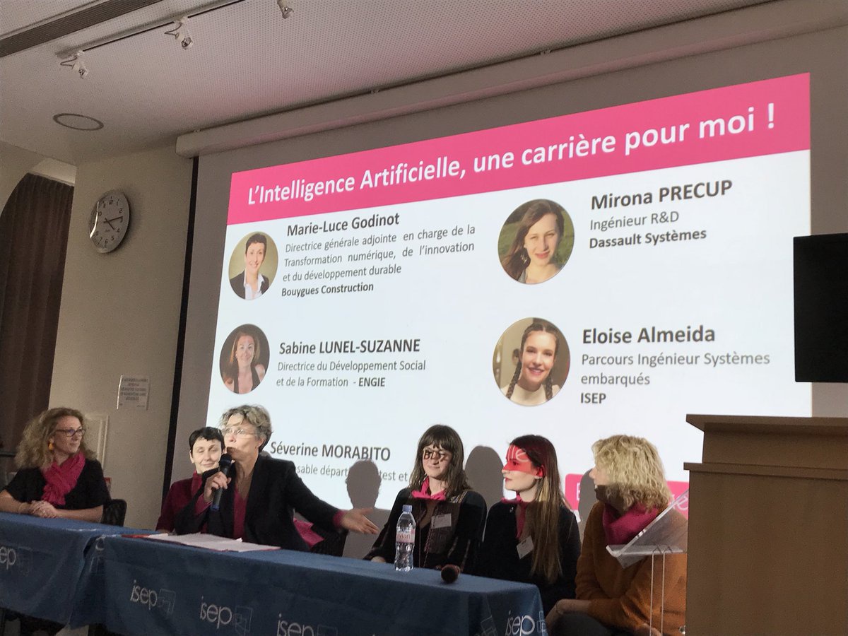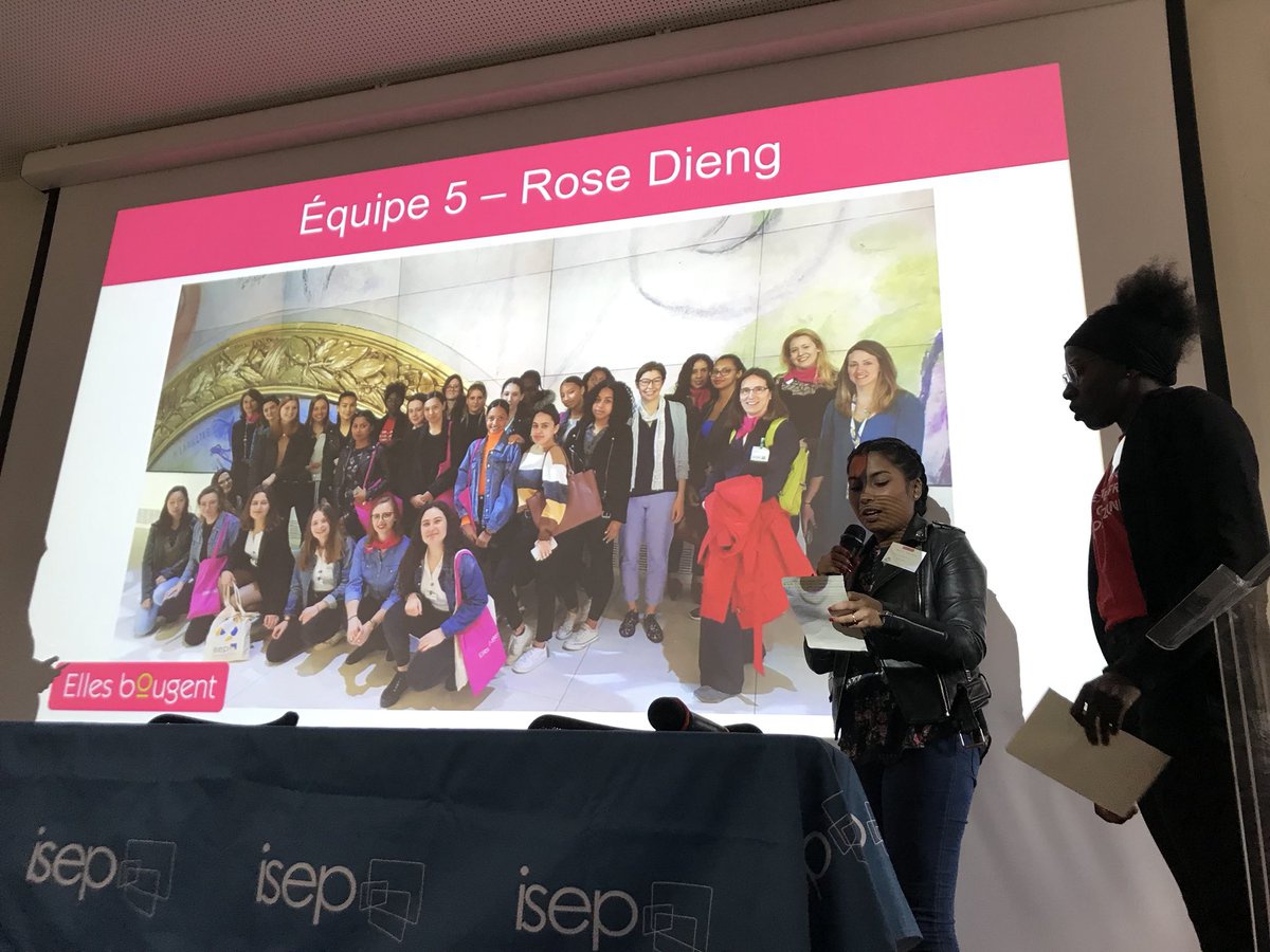 « "Tous les métiers sont accessibles aux hommes et aux femmes !" Une conviction forte de @mlgodinot présentée lors de la journée #EBNumerique organisée par Elles bougent à l'ISEP ! » ; « Une très belle journée avec Elles bougent ! #EBNumerique », Bouygues Construction (sur Twitter).