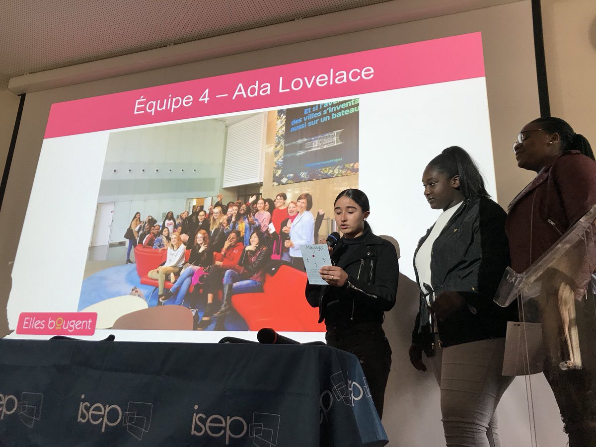 « Nos marraines Elles bougent participent à l'événement Elles innovent pour le numérique #EBNumerique Au programme : réalité virtuelle, signalisation ferroviaire et codage. Merci aux élèves du collège Victor Hugo de Sarcelles et aux étudiantes de l'ISEP pour leur participation. », Alstom (sur Twitter).