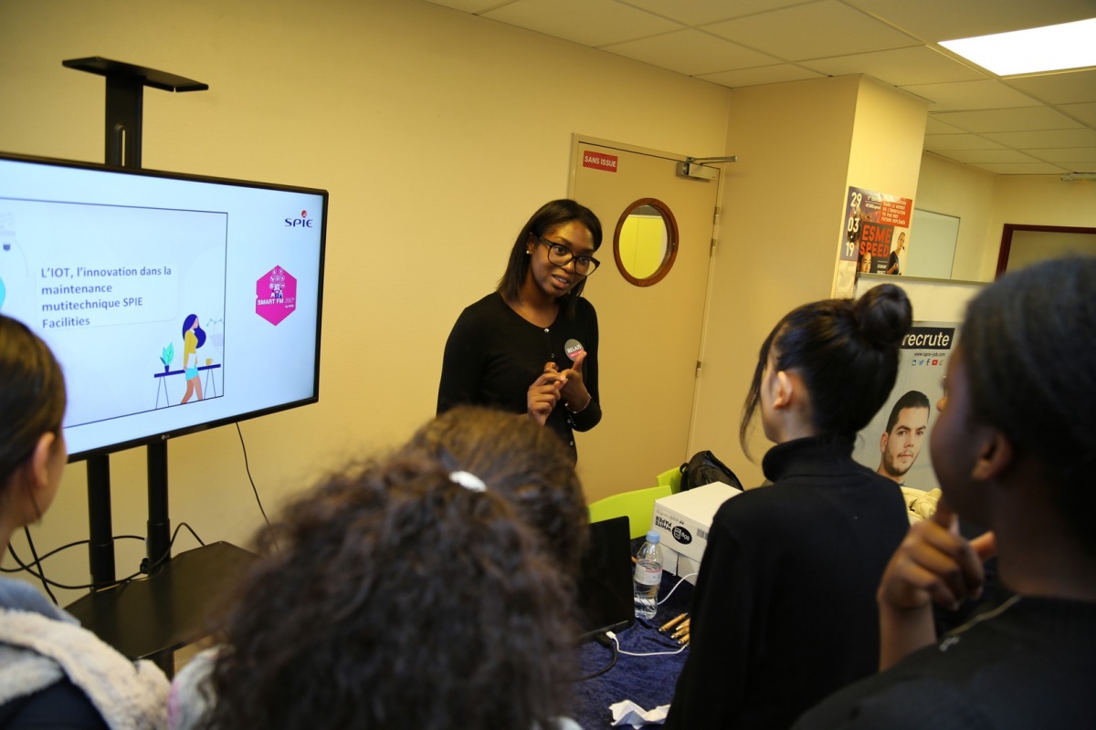 Tout au long de la journée, les jeunes filles, réparties en équipes, ont pu découvrir les métiers et carrières liés à ce secteur d'activité, grâce notamment aux échanges avec les marraines et les relais présent.e.s, ainsi qu'aux différentes activités organisées : visites de sites, concours photo, pitchs de marraines et espace démos.