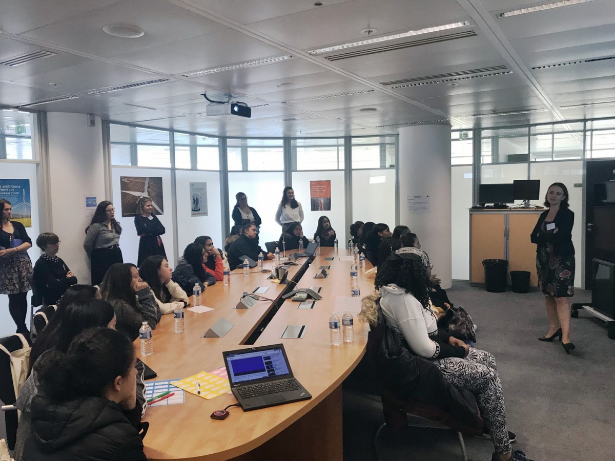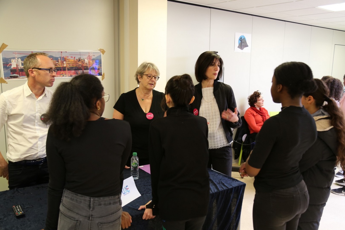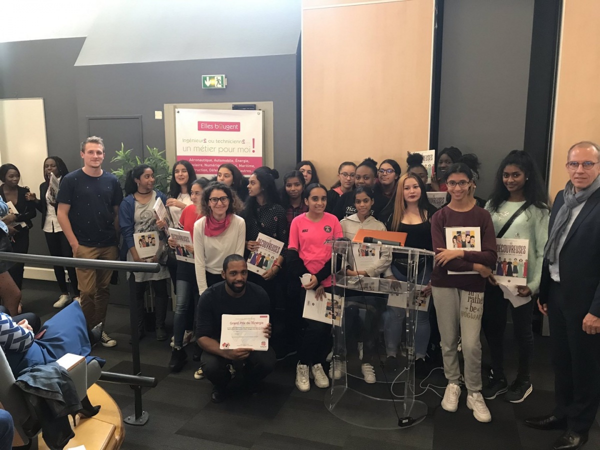 300 collégiennes et lycéennes, en provenance de Paris, du Val d'Oise, de Seine-et-Marne, des Hauts-de-Seine, des Yvelines et de la Seine-Saint-Denis, ont été invitées, ce jeudi 10 octobre 2019, à visiter une entreprise parmi les 18 sites proposés. Elles ont ainsi pu échanger avec près de 150 marraines et relais Elles bougent. Au total, près de 400 personnes ont participé à l'événement Elles bougent pour l'Energie en Ile-de-France !