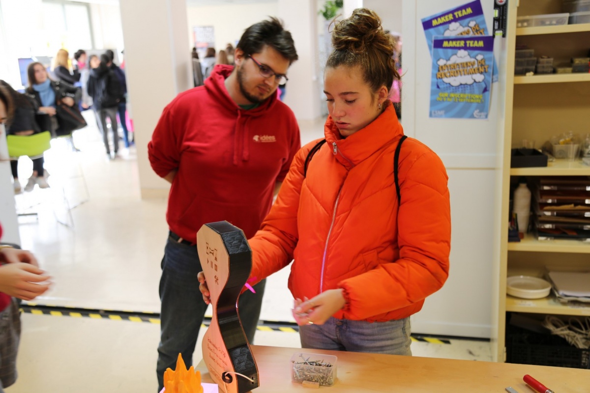 En déambulant au sein de l'espace démo, les collégiennes, lycéennes et étudiantes ont pu apprendre, grâce aux étudiant.e.s de l'ESME Sudria, comment fonctionne un panneau solaire, une éolienne, une dynamo de vélo, ou une bobine tesla. Elles ont pu danser avec des robots Nao et voir le fonctionnement d'une imprimante 3D. Des étudiants de l'ESIEE Paris ont également fait des démonstrations sur leur projet : le tracker solaire. Il s'agit d'une installation de production d'énergie solaire, qui permet de suivre le soleil selon le principe de l'héliostat.