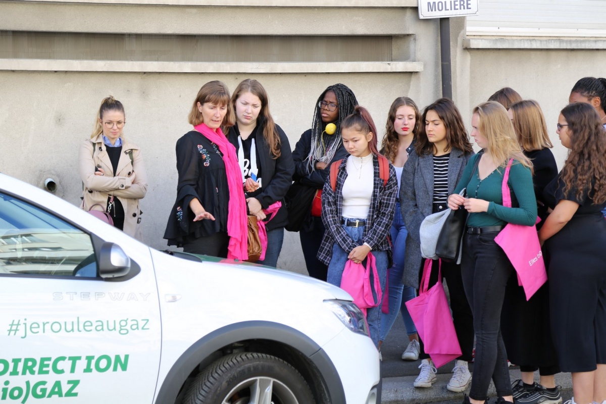 GRTGaz est même arrivé avec leur voiture propre, qui roule au biométhane : une Dacia Renault Sandero, présentée par notre marraine Bettina, qui a ainsi montré aux participantes qu'aujourd'hui nous pouvons créer des énergies propres et durables.