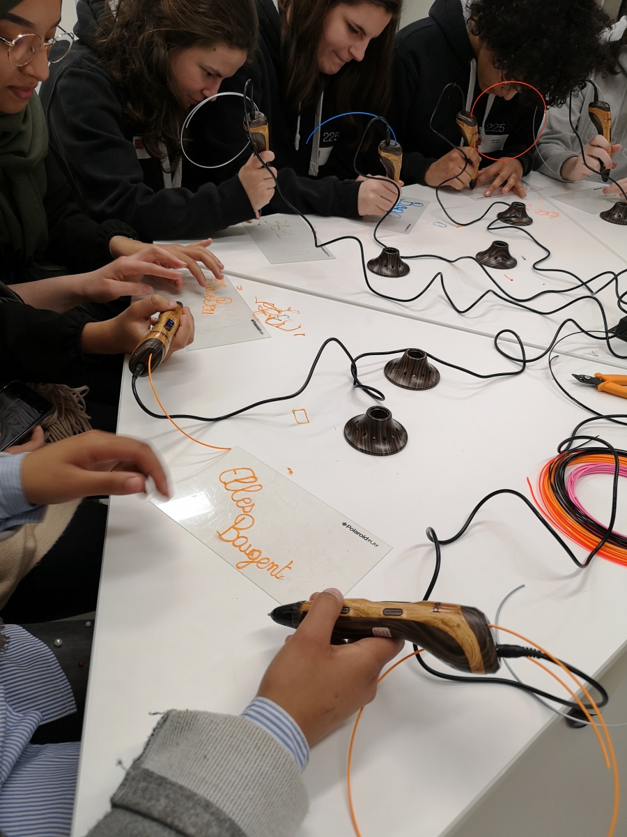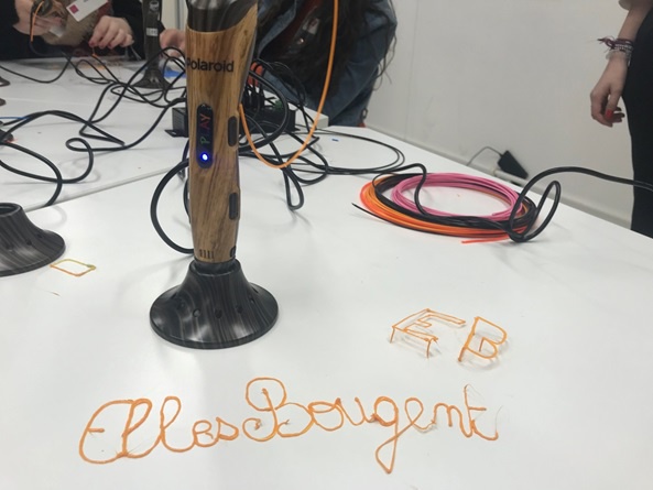 L'ESME a proposé une animation avec un stylo impression 3D, qui a eu beaucoup de succès auprès des filles. Grace à ce simple stylo, on peut réaliser à main levé une sculpture, de la tour Eiffel par exemple.