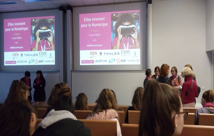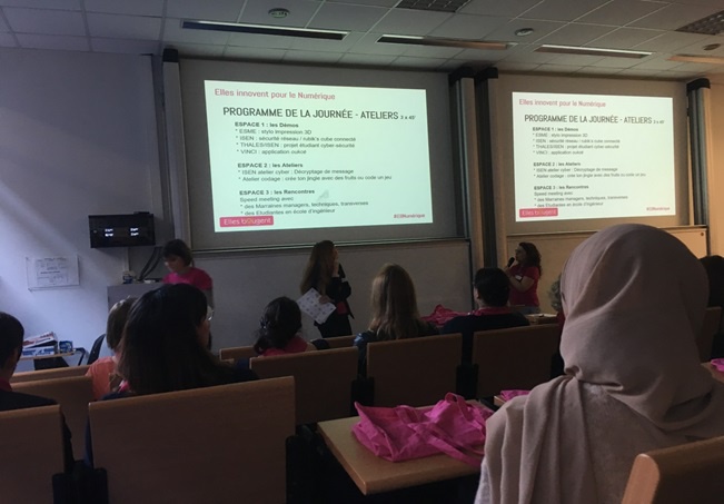 Le 4 Avril s'est tenu l'événement Elles Innovent pour le Numérique dans les écoles ISEN-Lille et ESME-Sudria. Les jeunes-filles ont eu l'occasion de pratiquer le coding et la cryptographie, de découvrir la cyber-sécurité, l'IA ou encore l'IoT, mais surtout de rencontrer nos nombreuses marraines.
