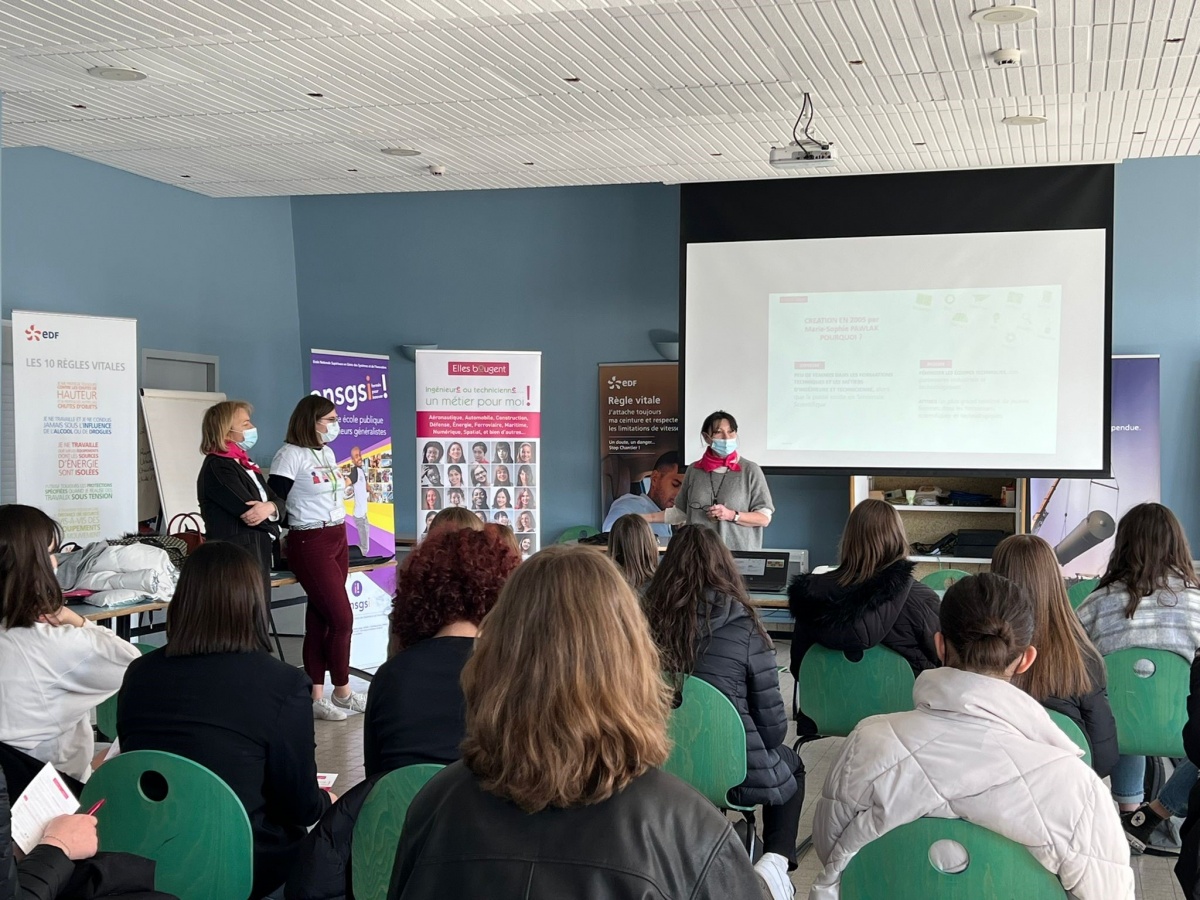 À l'occasion de la Journée des Droits des Femmes, le 8 mars 2022, l'association Elles Bougent Lorraine s'est mobilisée pour une journée exceptionnelle de sensibilisation aux carrières scientifiques et technologiques au Cycle Combiné Gaz EDF de Blénod les Pont-à-Mousson.