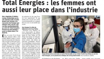 Tout d'abord une plénière où quatre marraines de TotalEnergies ont témoigné de leur parcours de formation et de leur carrière professionnelle et ont répondu aux questions des lycéennes. Puis la visite du site immense aux installations grandioses ont frappé les esprits et les échanges avec les marraines rencontrées dans les ateliers et les laboratoires ont permis d'aborder d'autres sujets encore , par exemple sur les droits concernant plus particulièrement les femmes enceintes dans une entreprise chimique…