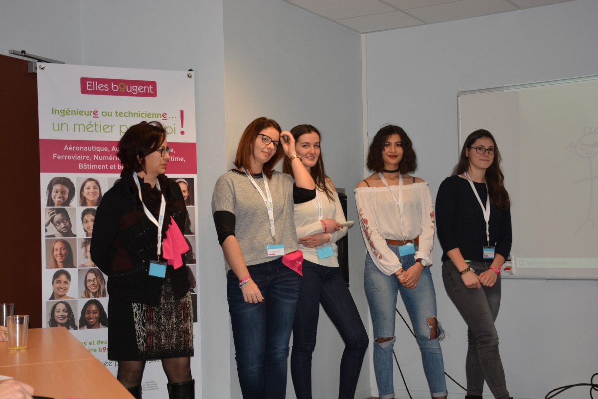 Bravo aux marraines, Maryline (Arts et Métiers) et Audrey (Enedis), aux lycéennes, Camille et Candice du lycée Roosevelt de Reims et à Céline et Lou de l'UTT. !
