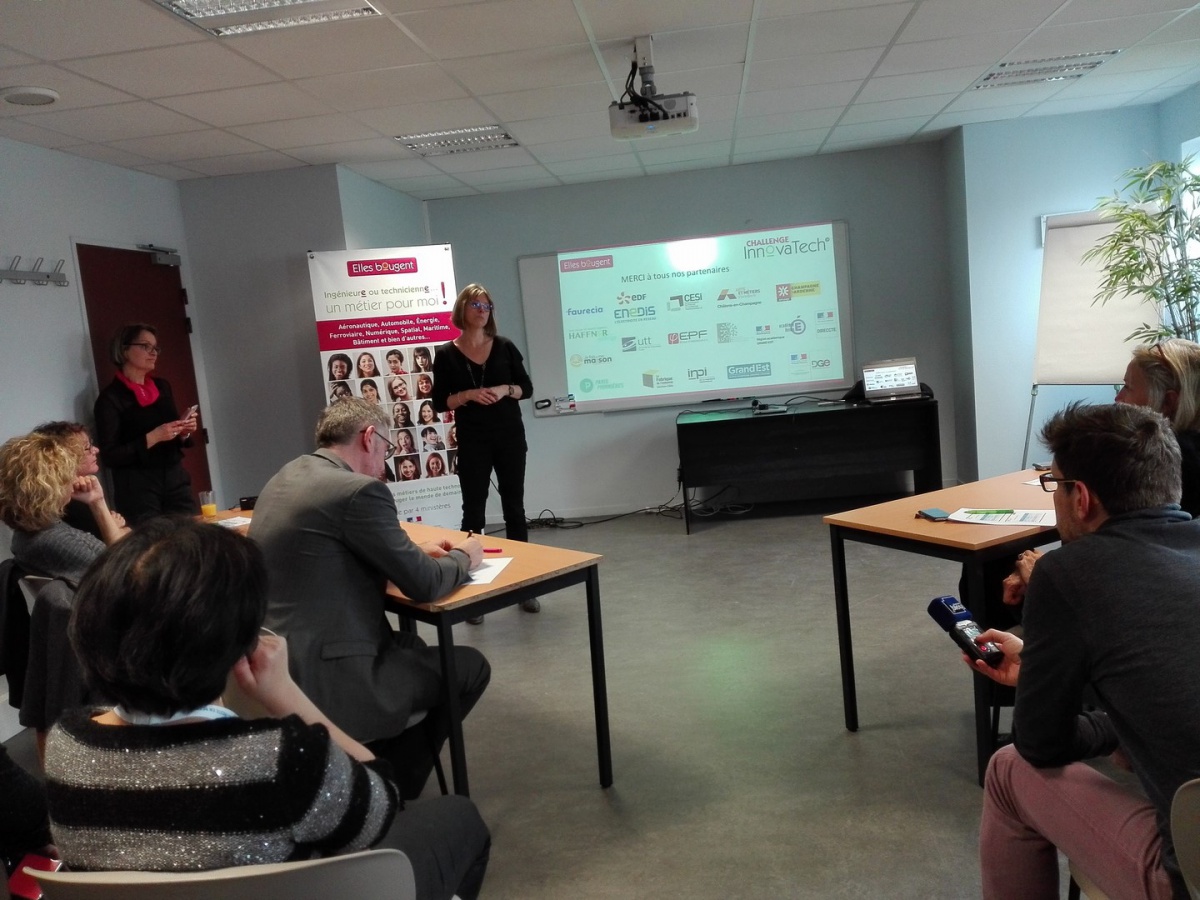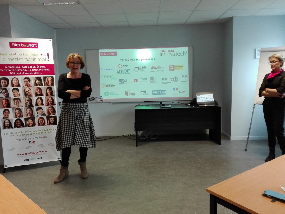 Citons tout d'abord nos deux déléguées Elles bougent Champagne-Ardenne, sans qui rien n'aurait été possible : Laurence Fouilland, enseignante-chercheuse à Arts et Métiers Chalons et Hélène Milot, directrice régionale Enedis.
