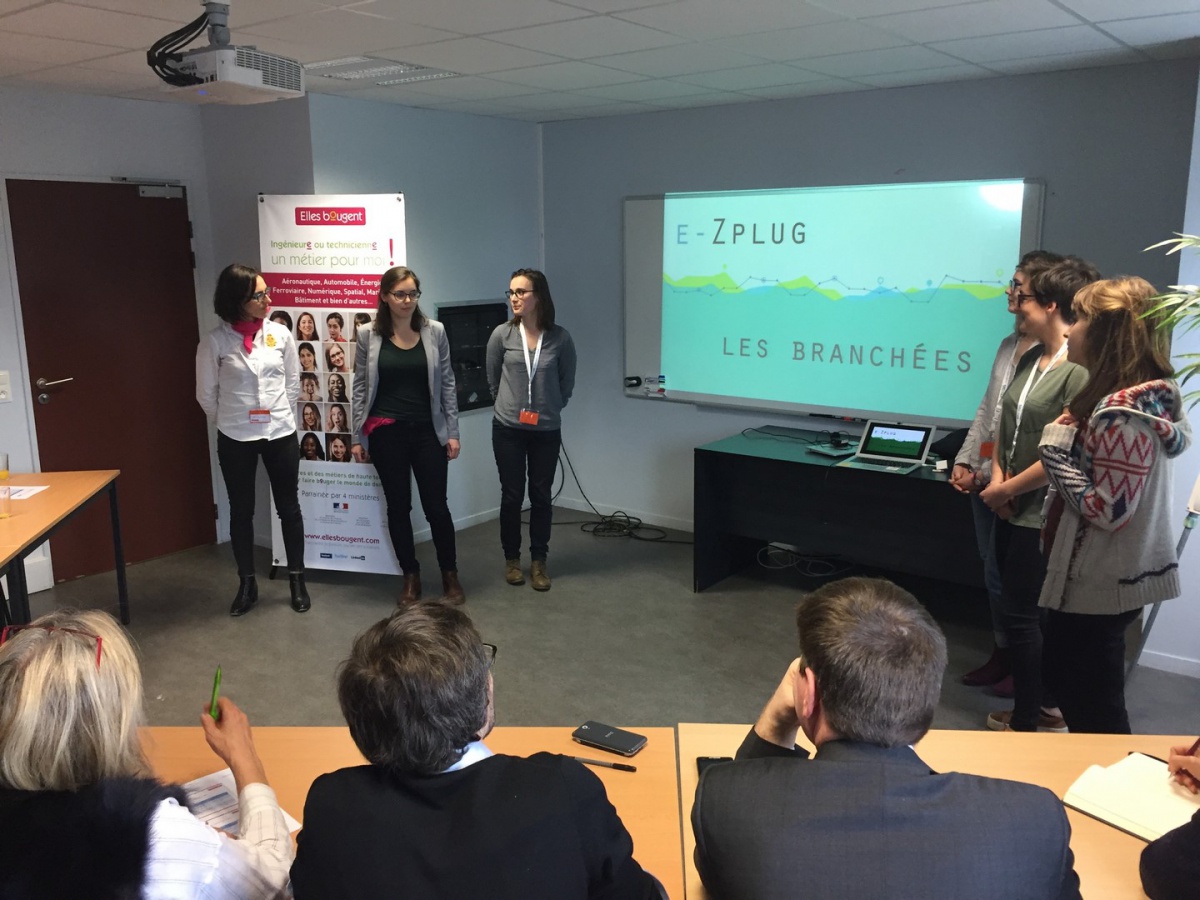 Le concept du projet finalisteL'équipe "Les branchées" a conçu "e-Zplug", une application pour smartphone mettant en relation conducteur de véhicule électrique et propriétaire de borne. Avec le développement attendu et annoncé des véhicules électriques, nul doute que leur projet de Transports de demain ira loin !