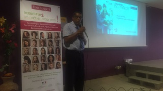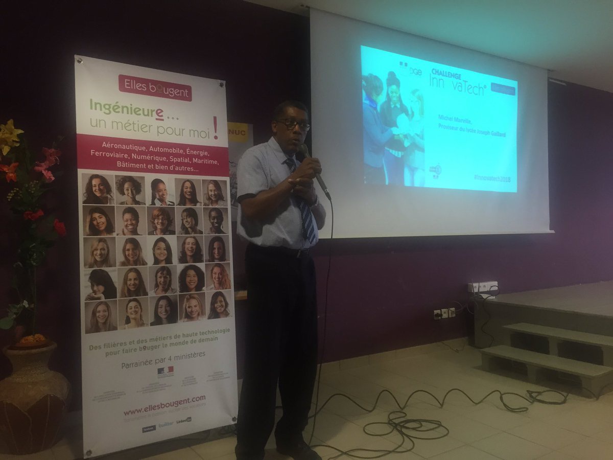 Aude PAVILLA, de la Délégation Régionale Martinique, et Marie-Sophie Pawlak, Présidente et fondatrice de l'association Elles bougent, arrivent pleines d'enthousiasme et d'énergie pour accueillir les participantes et les encourager. Après le mot d'accueil de Michel Marville, proviseur du lycée Joseph Gaillard, pas de temps à perdre, les équipes foncent dans les salles de travail pour découvrir leur sujet !