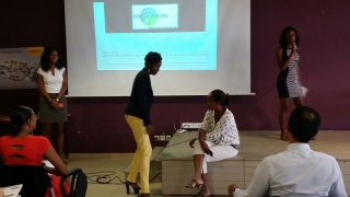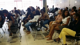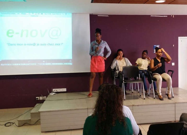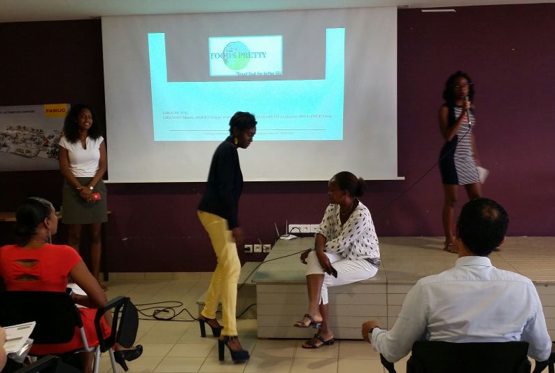 Le jury, composé de Aurélie NELLA, Conseillère exécutive de la collectivité territoriale de Martinique (CTM) en charge de l'enseignement supérieur et de la recherche, Gérard BAUDIN, IA-IPR Sciences et techniques industrielles, Académie de Martinique, Luvinia DORIVAL, chargée de mission égalité des droits filles-garçons, Académie de Martinique, Kelli MAMADOU, CEO E-Sims, Odile LEBBADI, CEO Martinique Medical Care, Gilbert BARON, Direccte Martinique, Pôle 3E, Service compétitivité – innovation, Rebecca MAITREL, Chargée de mission M.A.R.E.E. (Mission Académique aux Relations École/Entreprise), Mini Entreprise EPA (Entreprendre Pour Apprendre), Marie Sophie PAWLAK, Présidente et Fondatrice de l'association "Elles bougent", s'installe et se prépare pour découvrir les projets et désigner l'équipe qui représentera la région Martinique en finale, à Paris, le vendredi 30 mars 2018, pendant la Semaine de l'Industrie !