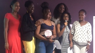 Equipe composée de Léane et Ophélie du lycée La jetée François, Ambre et Charlotte de la prépa Bellevue et Annick (CFTU Cie Foyalaise transports urbains et Line (GE) - Transports de demain