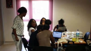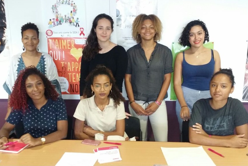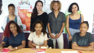 Equipe composée de Monia et Sara du lycée Ducos, des étudiantes Erlyse et Noémi de la prépa Joseph Gaillard, Françoise (Habitation LAPALUN) et Livia (Orange).