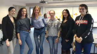 ISTIA-Polytech d'Angers, 8h30… Les marraines, les étudiantes et les lycéennes sont accueillies par Nathalie, professeure à l'ISTIA-Polytech et Marine, de l'équipe Elles bougent.
