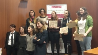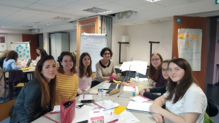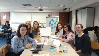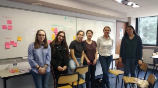Equipe composée de Leïla et Elise, du Lycée Bergson, Illeana et Catlin, étudiantes à l'ISTIA-Polytech d'Angers, ainsi qu'Isabelle, marraine de chez Sopra-Steria et Naima, marraine indépendante.