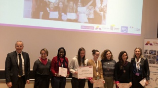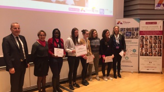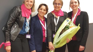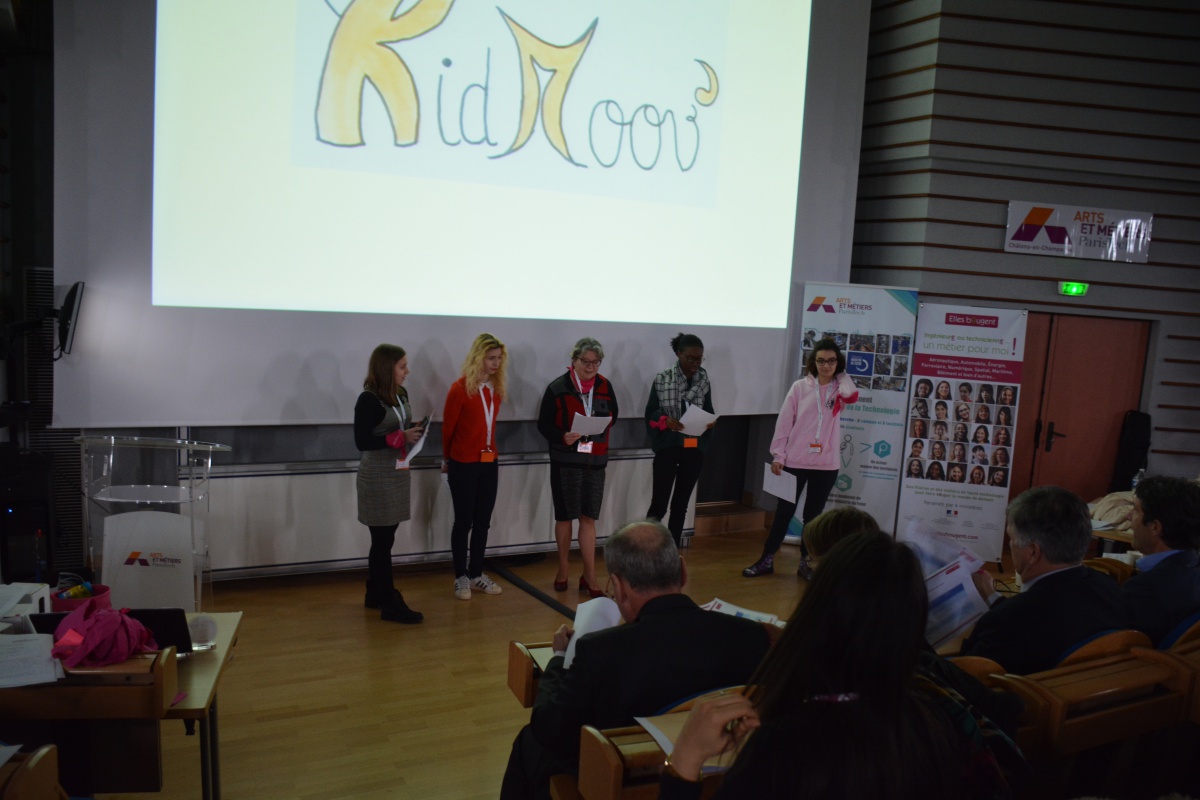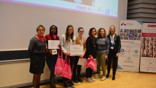Equipe composée d'Anaëlle et Emma, élèves au Lycée Camille Claudel, Bérénice et Mélanie-Laure, étudiantes à l'EPF, Valérie et Sabrina, marraines de chez Faurecia et ALTEN.