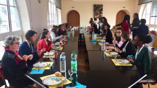 Les participantes comment à faire connaissance avec les membres de leur équipe autour d'un café.