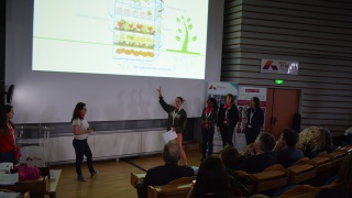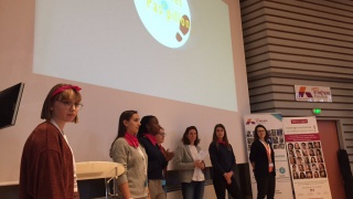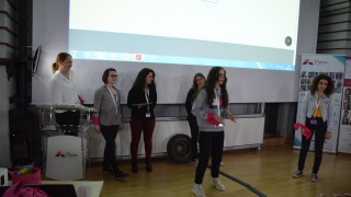 Equipe composée de Laura, élève au Lycée des Lombards, Dana, élève au Lycée Bayen, Marie et Salomé, étudiantes à l'IUT Troyes, ainsi que Valérie, marraine de chez Faurecia.