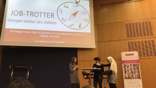 Zineb, élève du Lycée Diderot, Yuchen, étudiante de l'ECE Paris, et les marraines Elodie (EDF), Maylis (FIEV) et Yasmine (Alten), ont rendez-vous le 21 mars, au Ministère de l'Economie et des Finances, pour représenter la région Ile-de-France, lors de la grande finale de cette 4e édition du Challenge InnovaTech 2018-2019 ! Et elles remportent chacune une enceinte connectée.