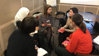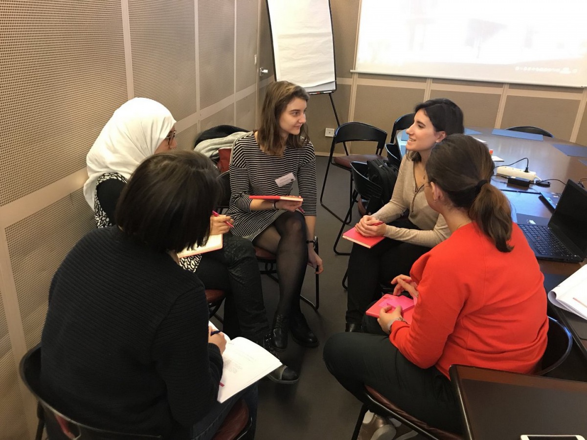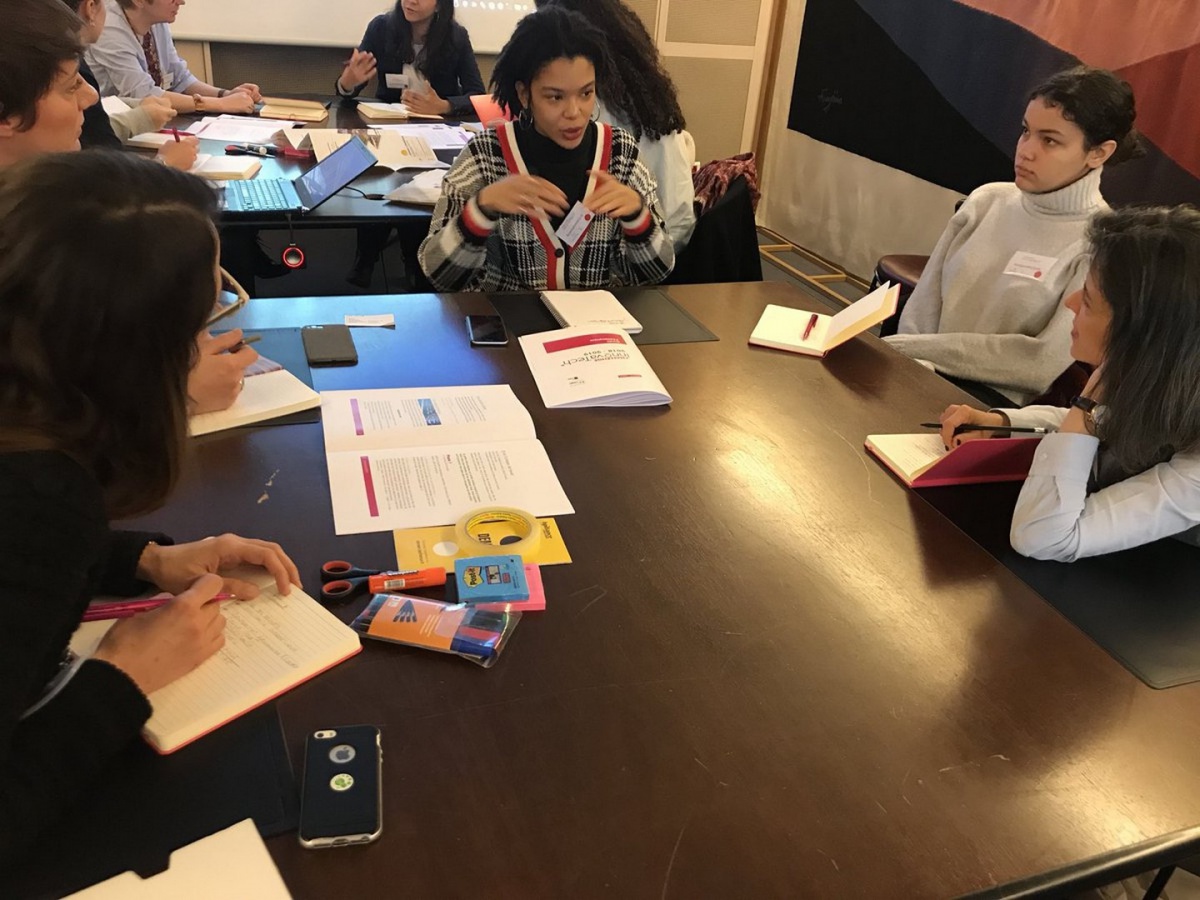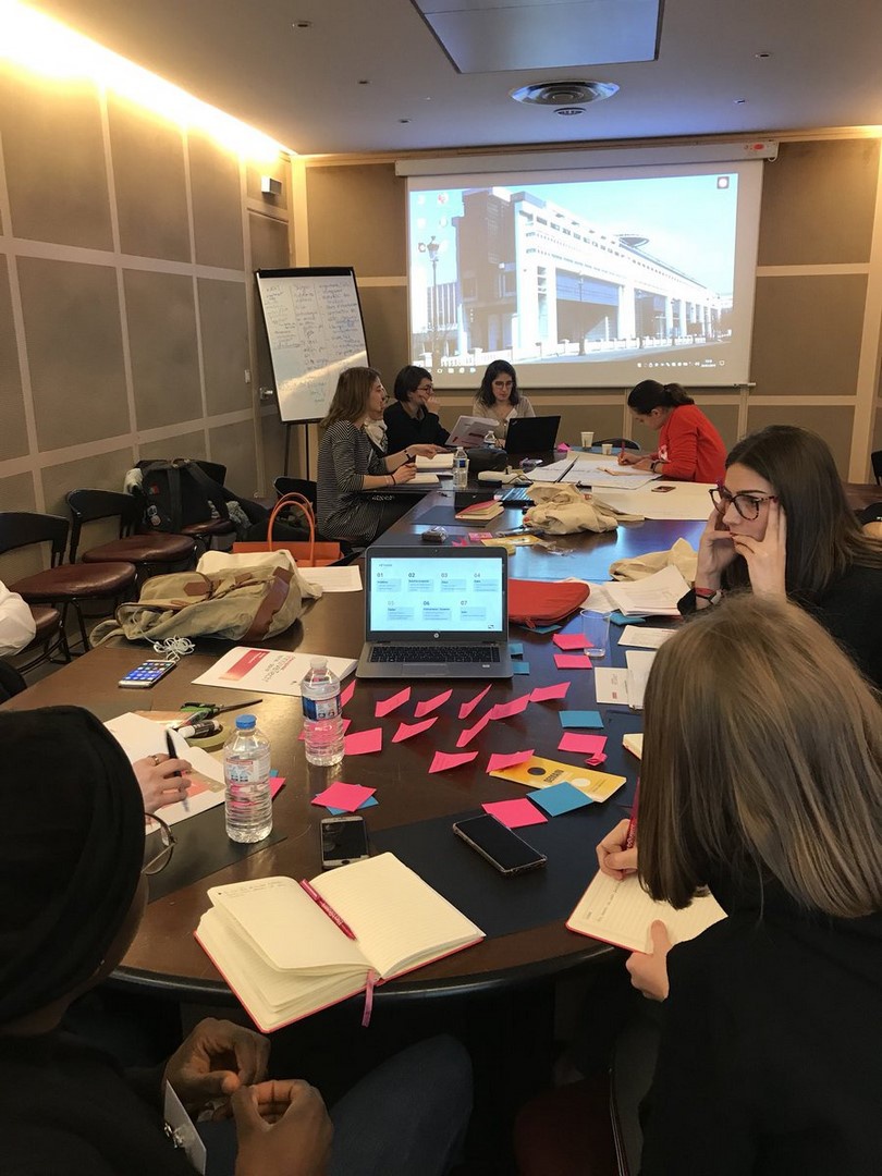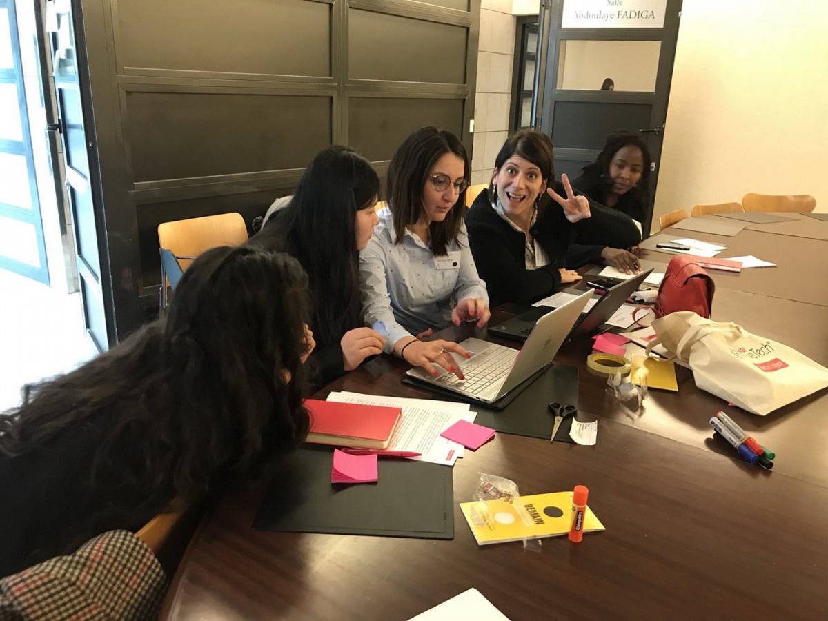 Les participantes commencent à faire connaissance avec les membres de leur équipe autour d'un café, puis sont invitées à s'installer dans le Centre Pierre Mendès France : le challenge InnovaTech de la région Ile-de-France est sur le point d'être lancé !