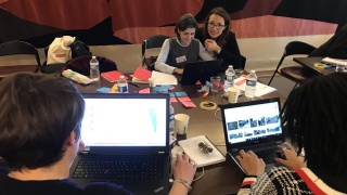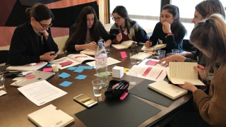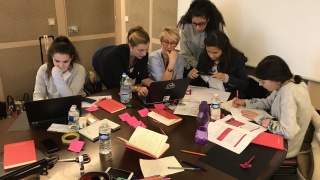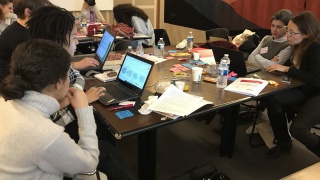 Les équipes commencent à se préparer et à répéter leur présentation. Certaines enchaînent les vocalises et les pas de danse, à l'écart des regards, espérant que leur pitch retiendra l'attention des expert.e.s invité.e.s à évaluer leurs projets. Les présentations seront notées en fonction des 3 critères suivants : le caractère innovant, la réponse à un besoin du marché et la qualité de la présentation.