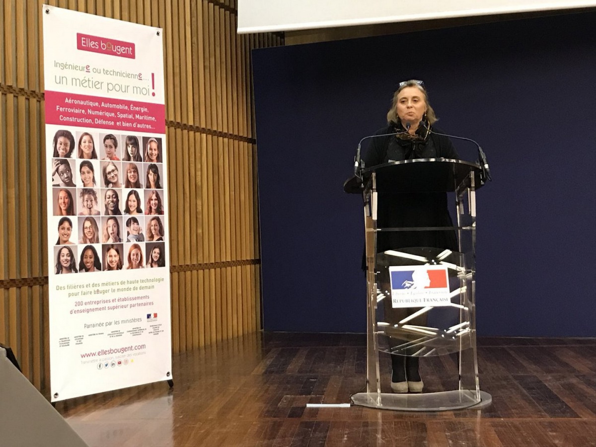 Florence Barnier, la directrice du développement et de la communication d'Elles Bougent, présente en quelques mots l'association, puis le déroulé de la journée, avant que les équipes se répartissent dans les différentes salles.