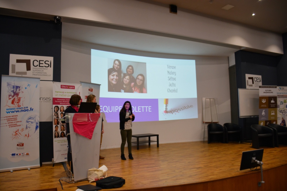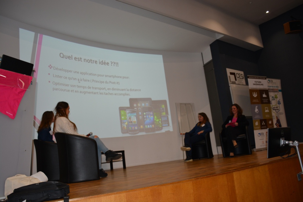 15 heures : les membres du jury* et les invités arrivent. Il est temps pour les jeunes filles et leurs marraines de monter sur la scène et de défendre leurs projets. Des présentations courtes, complètes et souvent drôles se sont succédées dans l'amphithéâtre. Autant dire que le choix du jury ne fut pas simple. Et les votes du public extrêmement serrés.
