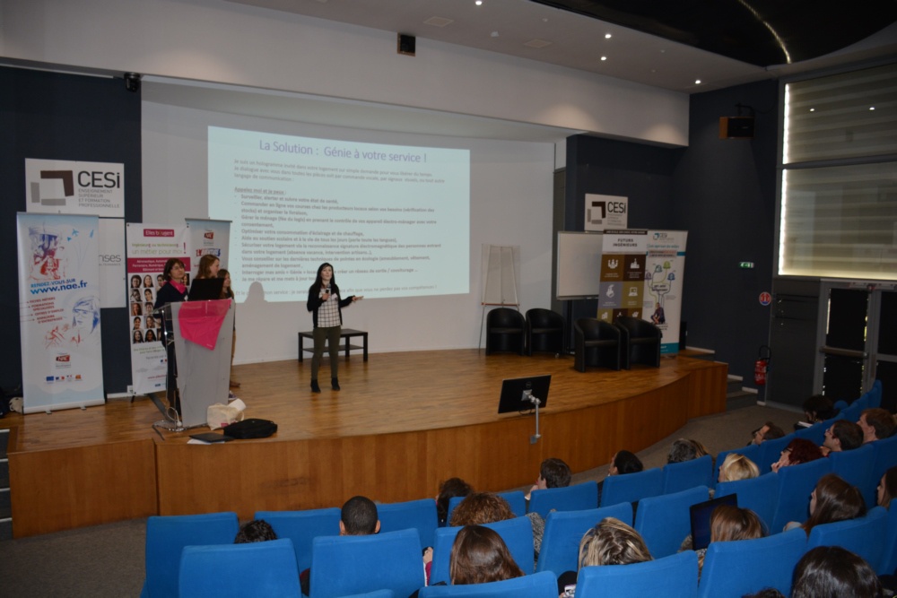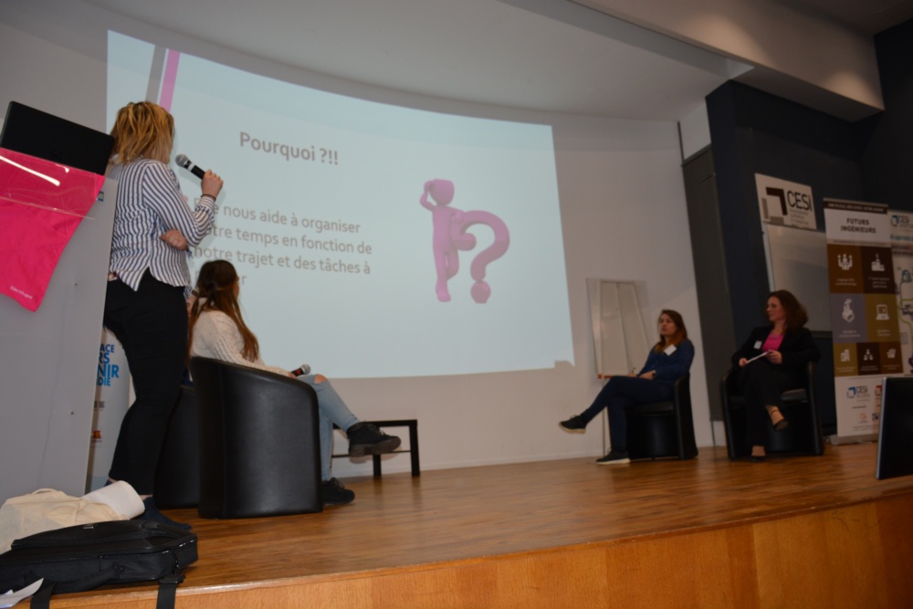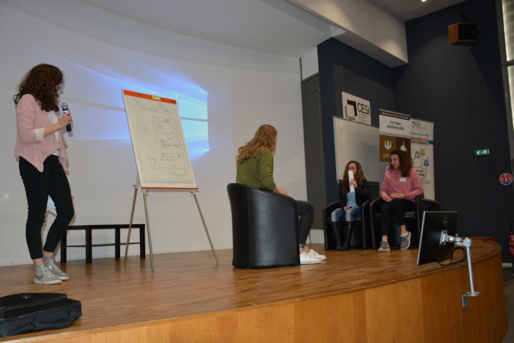 Après un petit mot de bienvenue par Christophe Martin, délégué régional Elles bougent et Christine Dispa, directrice régionale du CESI Nord-Ouest, les équipes se sont vite mises au travail. Pas de temps à perdre pour concevoir son projet dans les délais ! Parmi les thèmes proposés, les 6 équipes ont majoritairement choisi la problématique liée à la Ville Durable. Mais chacune l'a traité à sa manière, en abordant des questions comme l'énergie, le traitement des eaux, la circulation et le stationnement des véhicules ! Au cœur de leur réflexion : comment les nouvelles technologies peuvent nous aider à gérer la ville du futur d'une manière plus durable ? Et comment ces innovations pourraient faciliter notre vie au quotidien ?