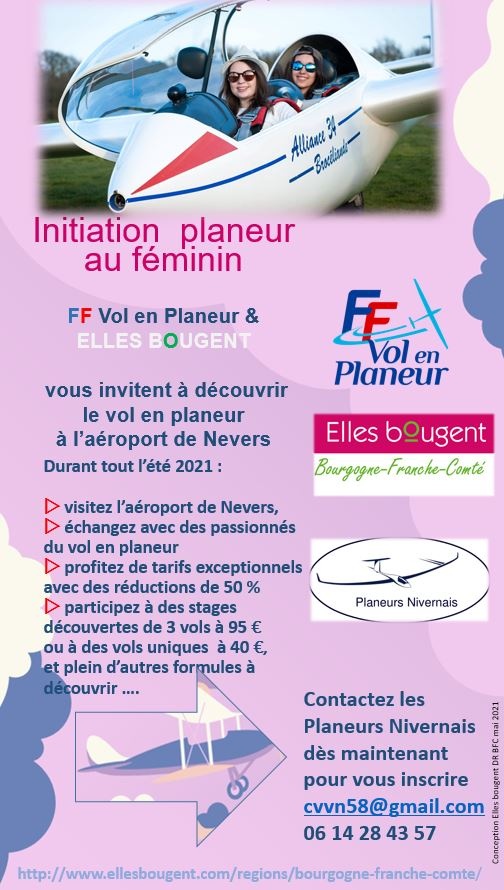 Elles bougent Bourgogne Franche Comté et la Fédération Française du vol en planeur vous invitent à découvrir le vol en planeur à l'aéroport de Nevers.
