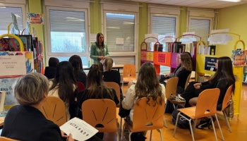 "La matinée s'est très bien passée, après accueil des marraines autour de café et madeleines de Commercy, nous avons démarré la plénière avec plus de 100 élèves (60 collégiennes +42 lycéennes) en présence des 8 marraines (et de leurs accompagnants)