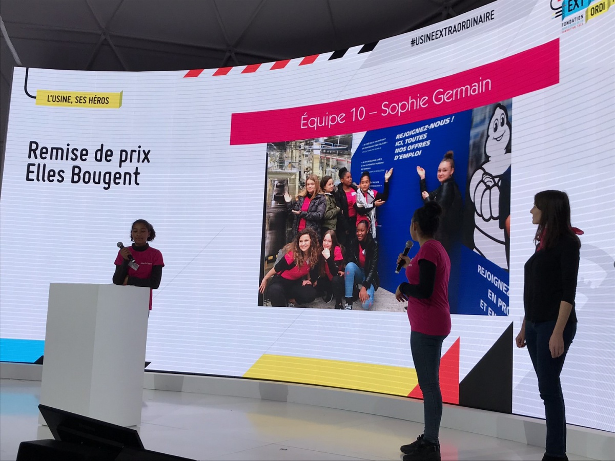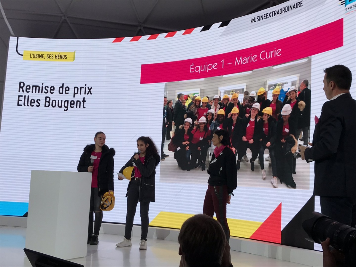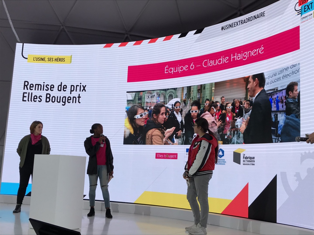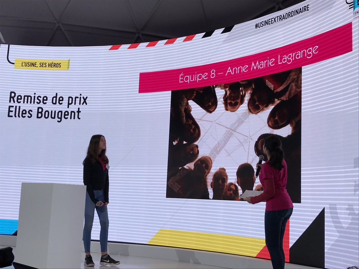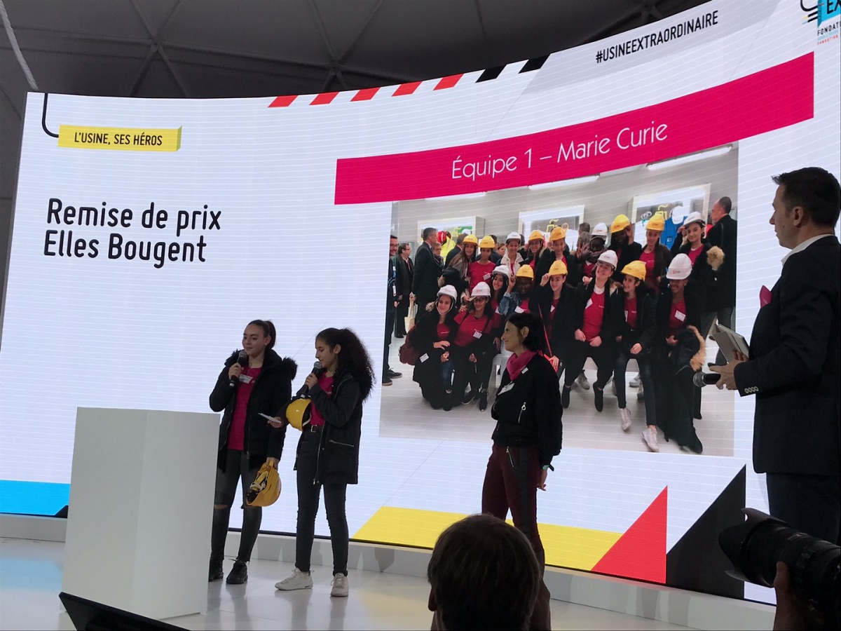 Après les visites, les filles ont défendu chacune à leur tour, sur la scène du Dôme « Partager », leur photo extraordinaire, pour exprimer en quoi leur vision de l'industrie a changé grâce à leur visite de l'Usine extraordinaire.