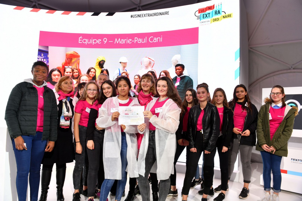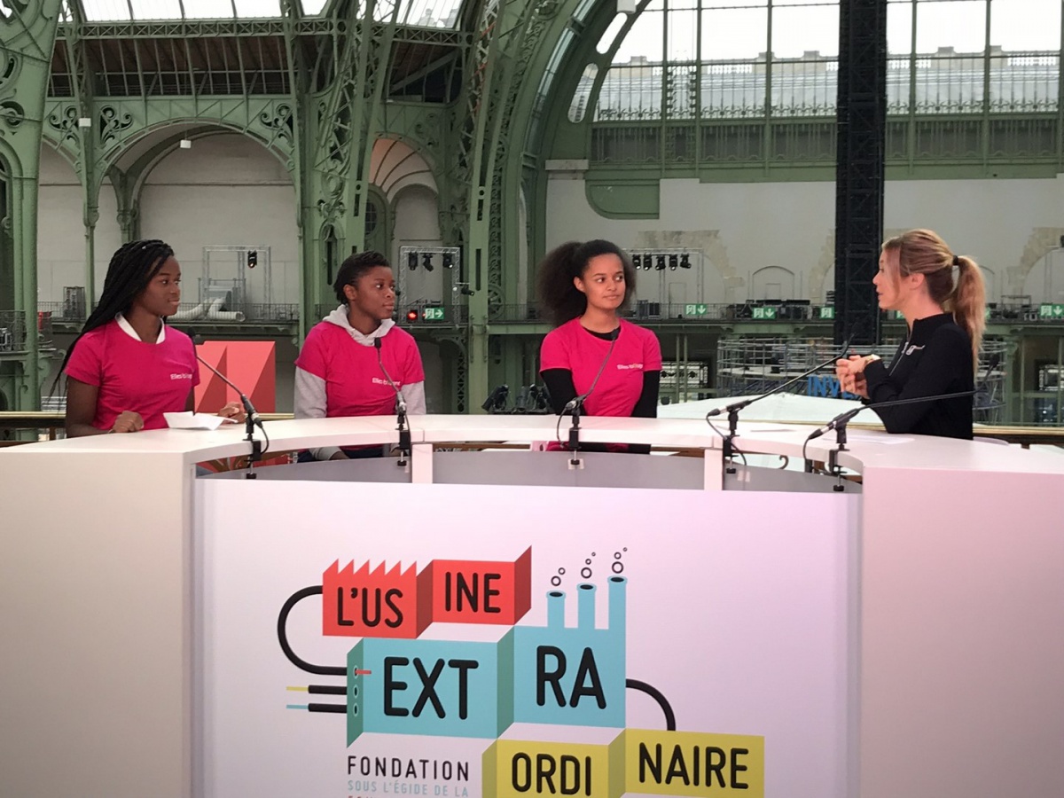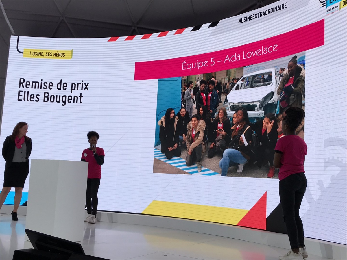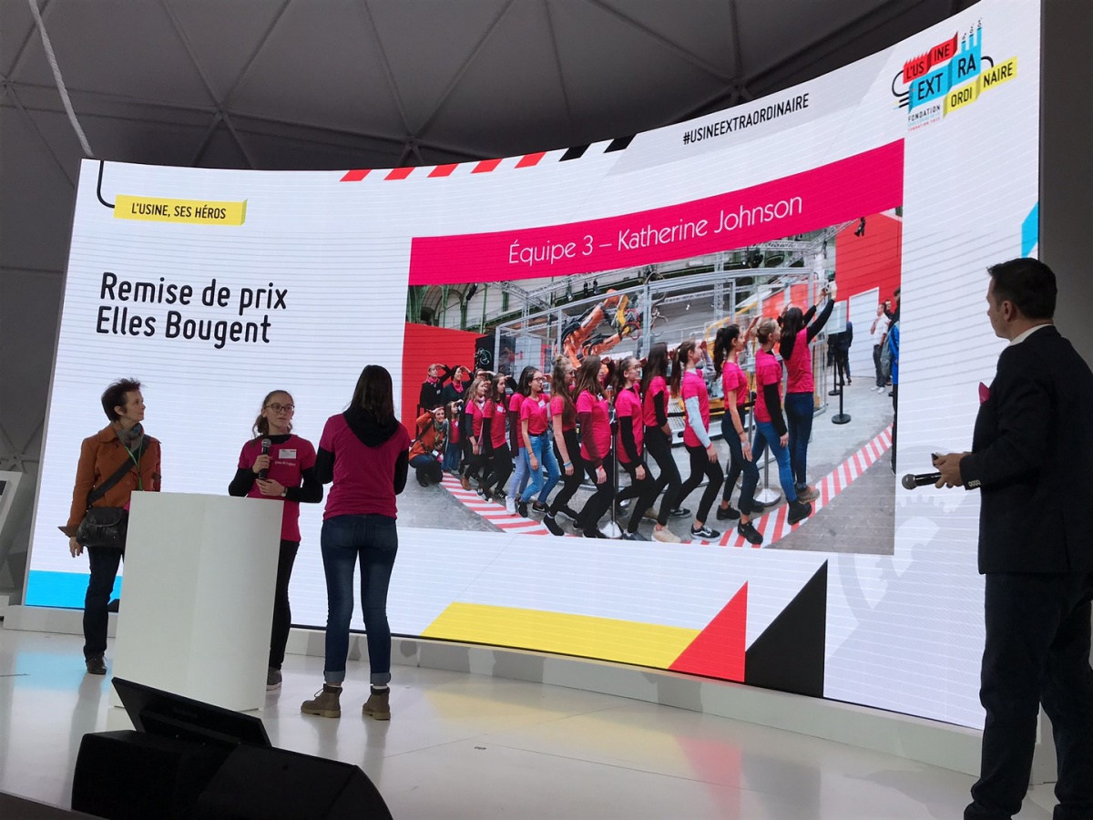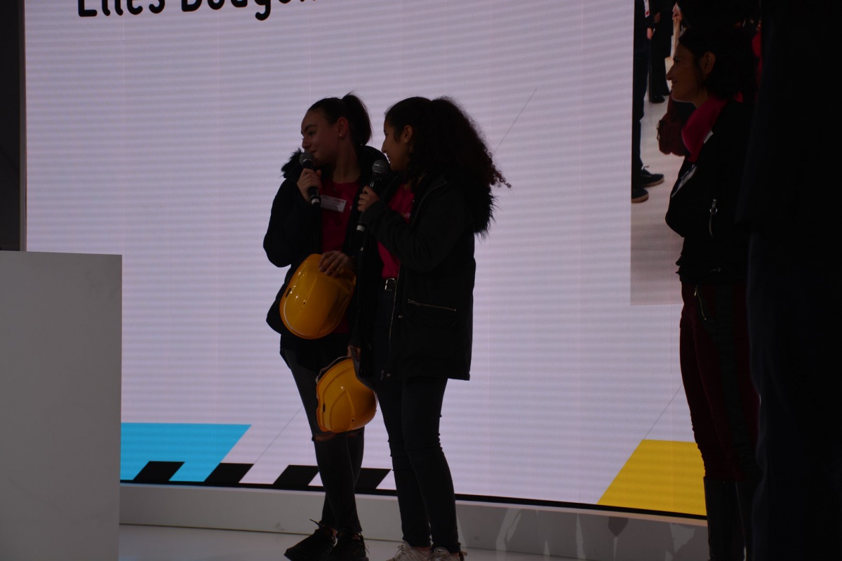Après les visites, les filles ont défendu chacune à leur tour, sur la scène du Dôme « Partager », leur photo extraordinaire, pour exprimer en quoi leur vision de l'industrie a changé grâce à leur visite de l'Usine extraordinaire.