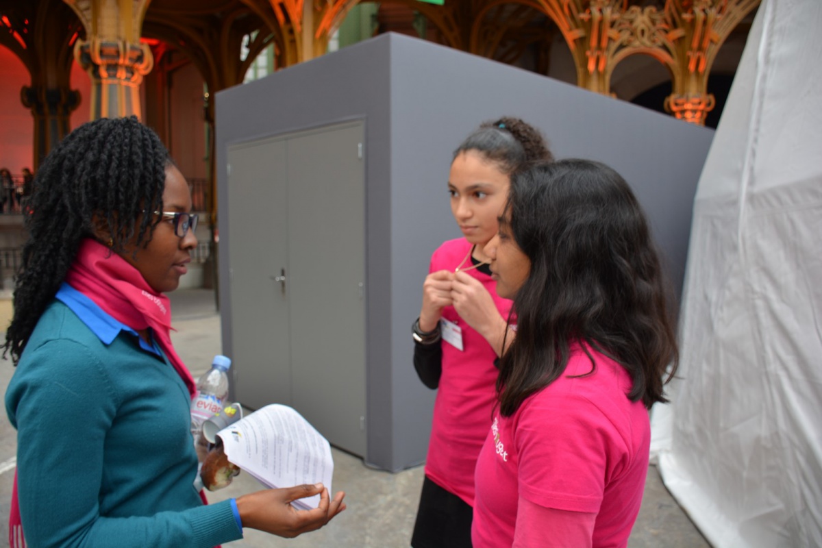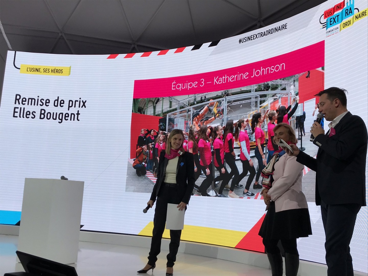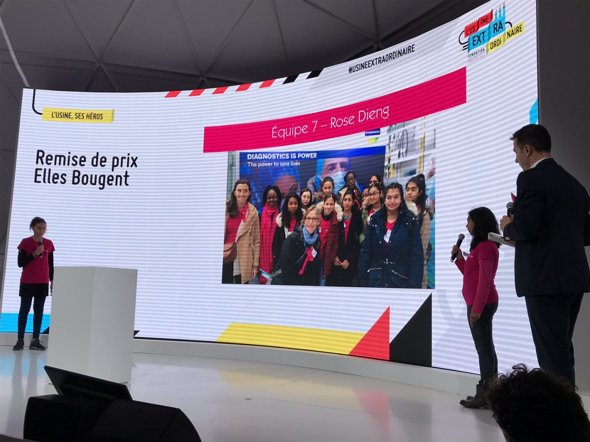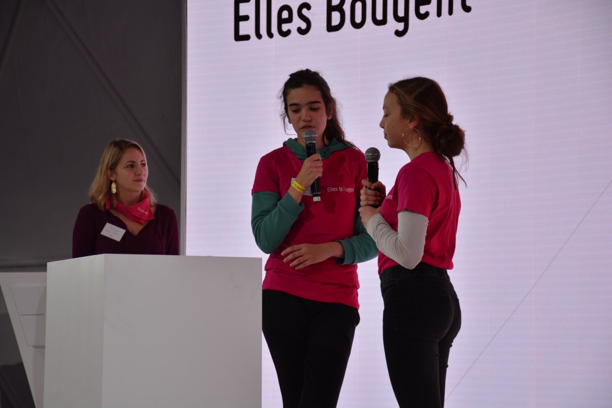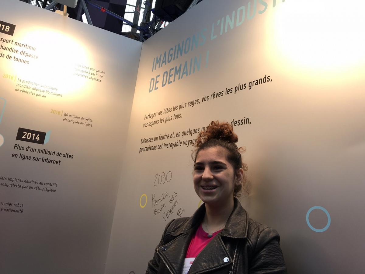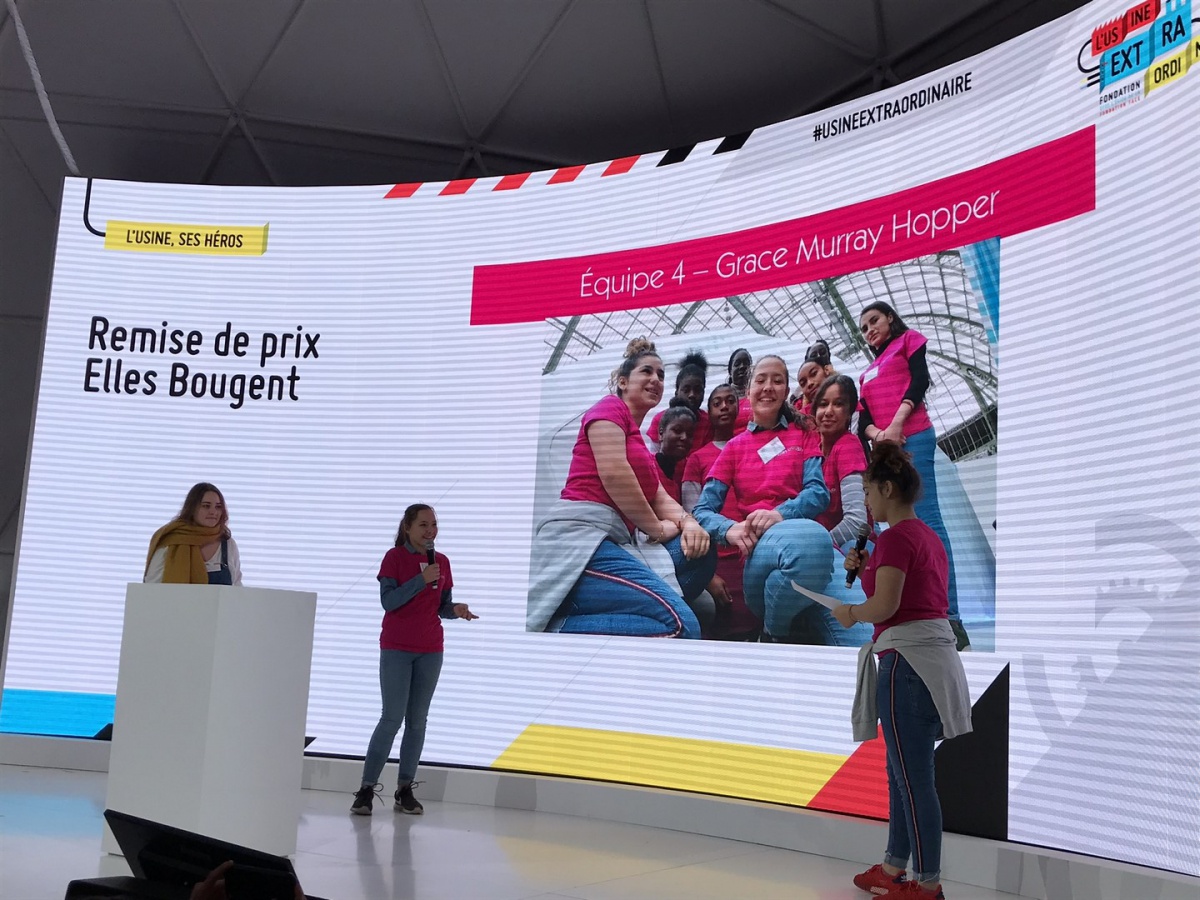 Après les visites, les filles ont défendu chacune à leur tour, sur la scène du Dôme « Partager », leur photo extraordinaire, pour exprimer en quoi leur vision de l'industrie a changé grâce à leur visite de l'Usine extraordinaire.