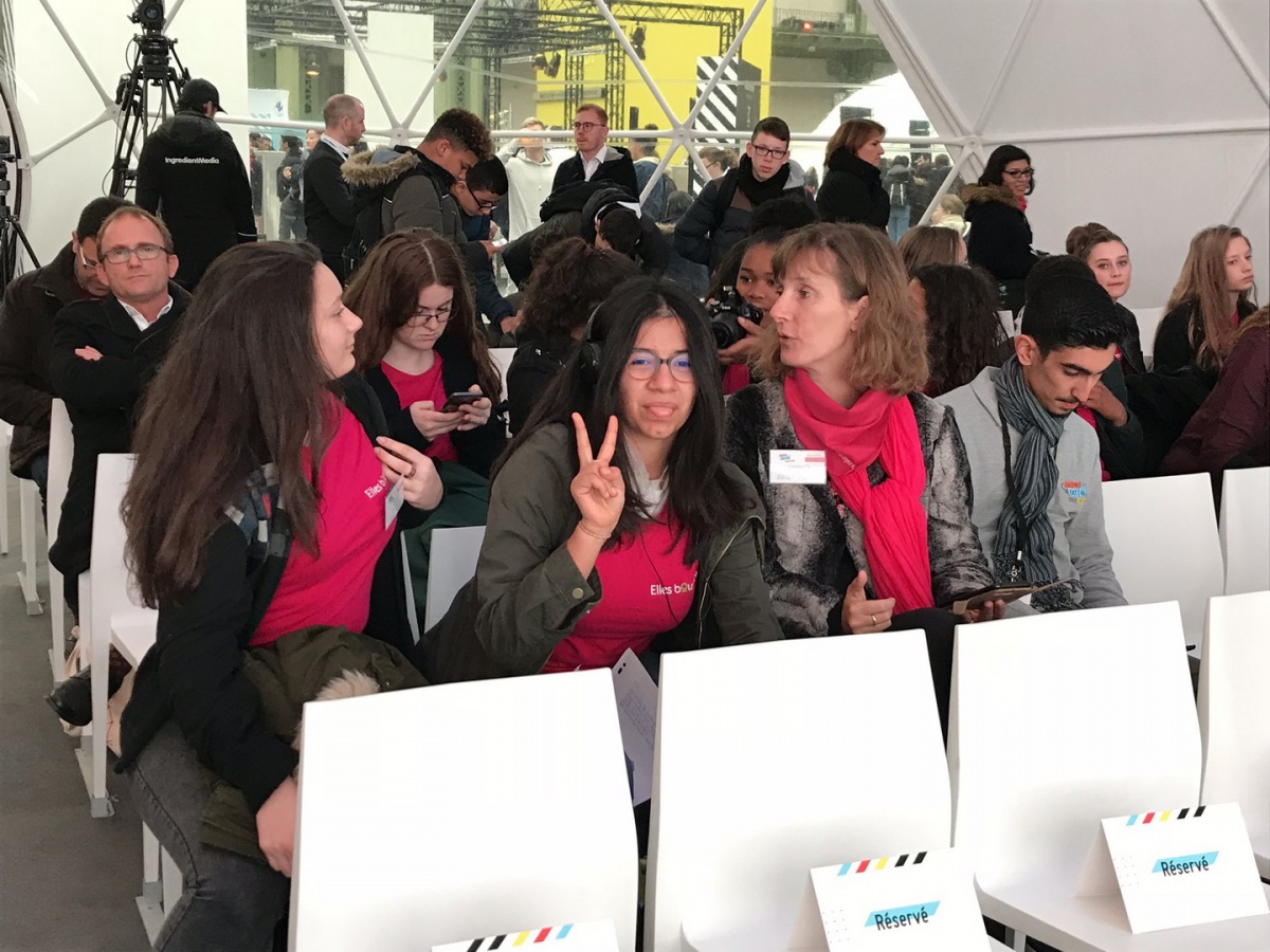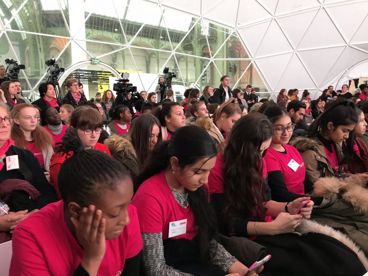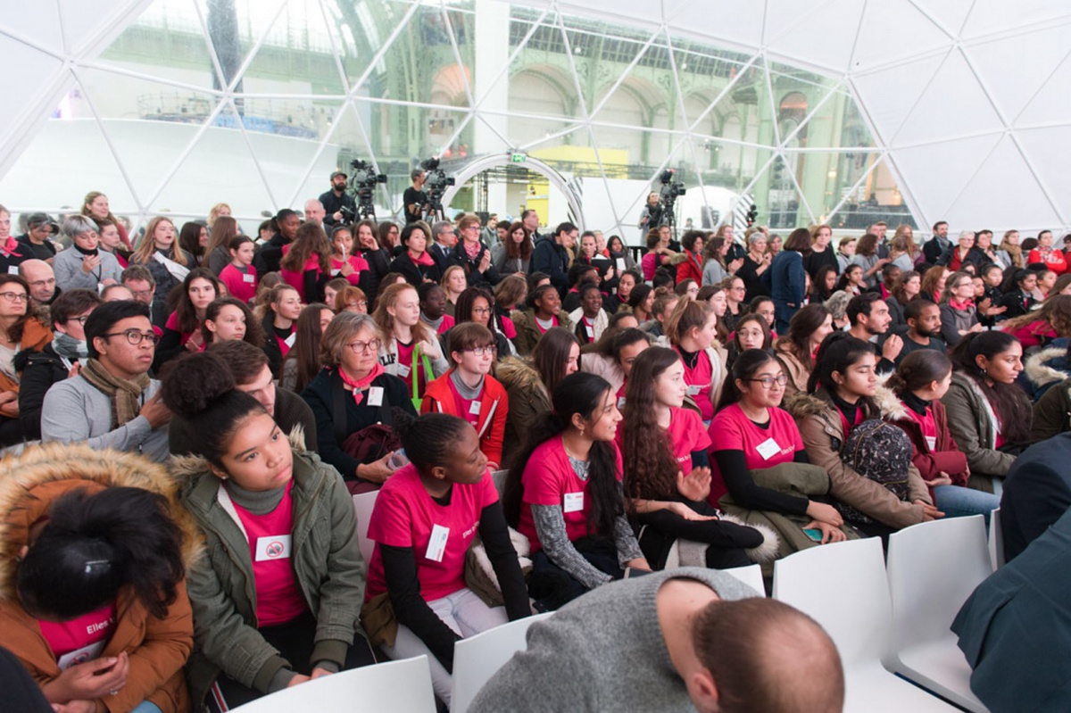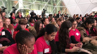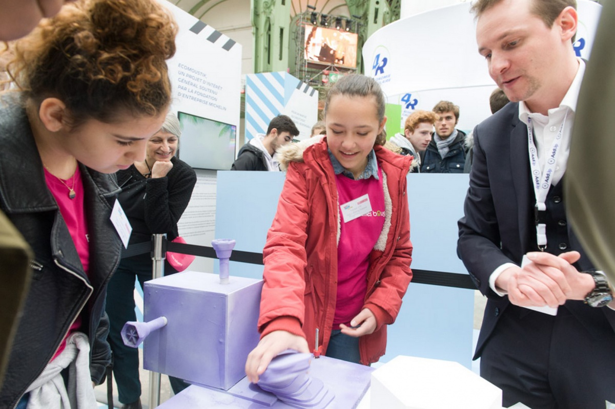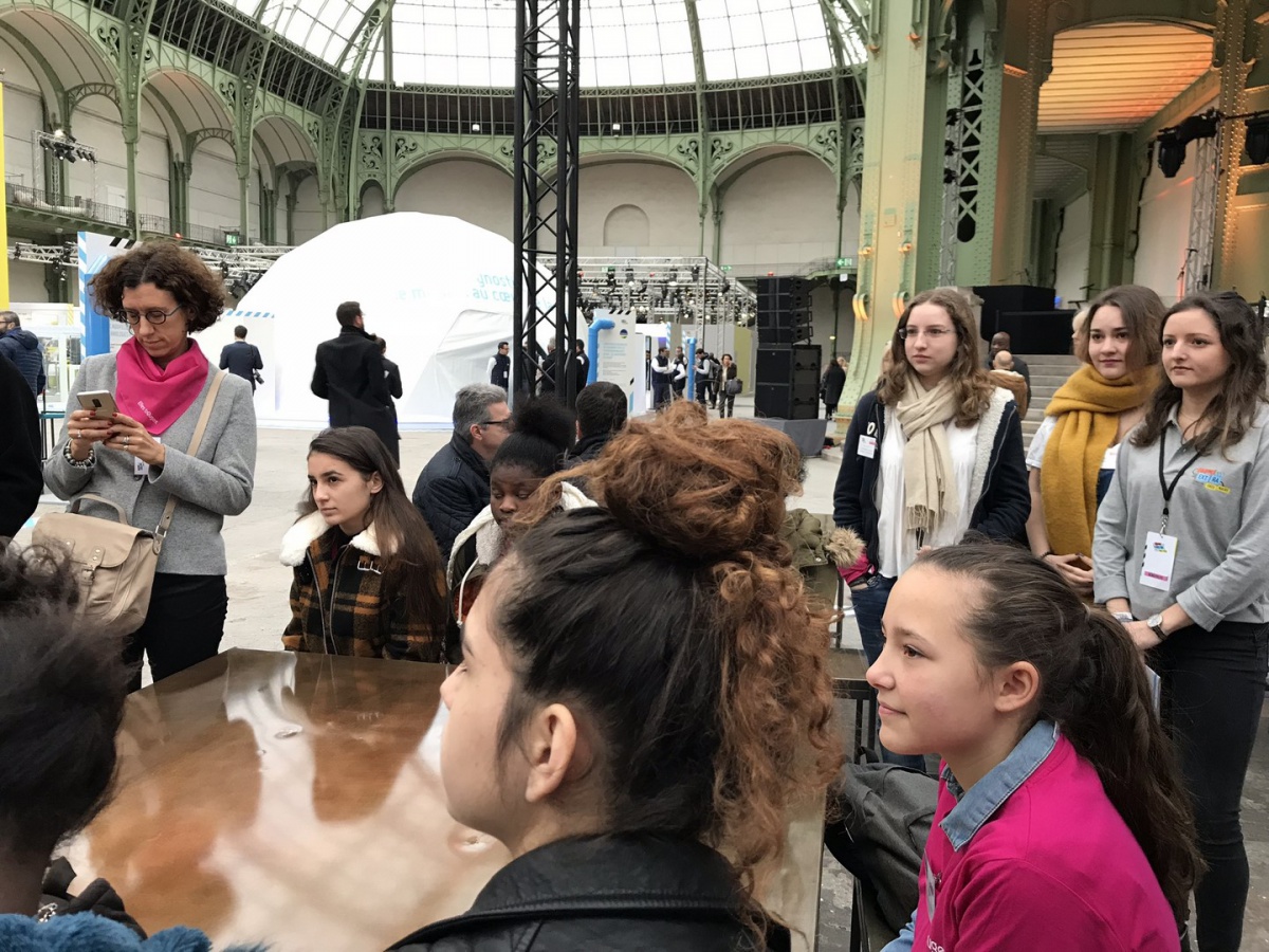 Après les visites, les filles ont défendu chacune à leur tour, sur la scène du Dôme « Partager », leur photo extraordinaire, pour exprimer en quoi leur vision de l'industrie a changé grâce à leur visite de l'Usine extraordinaire.