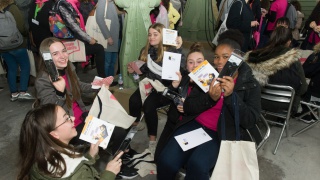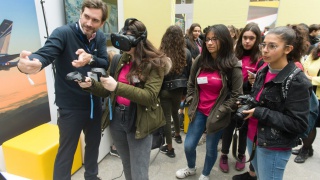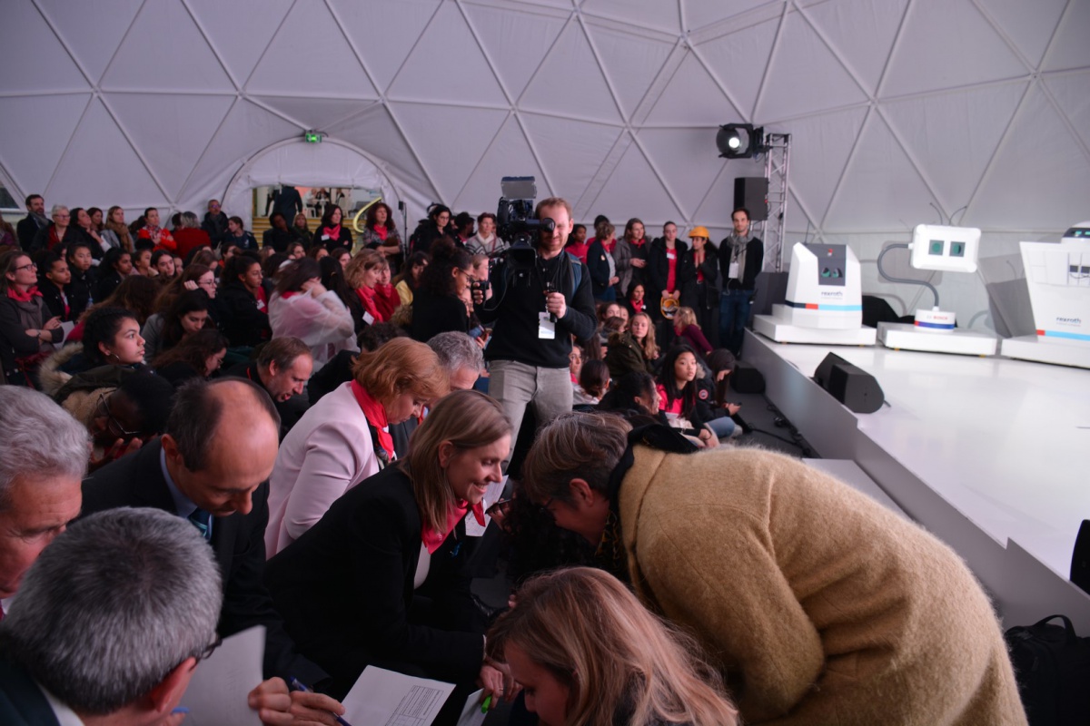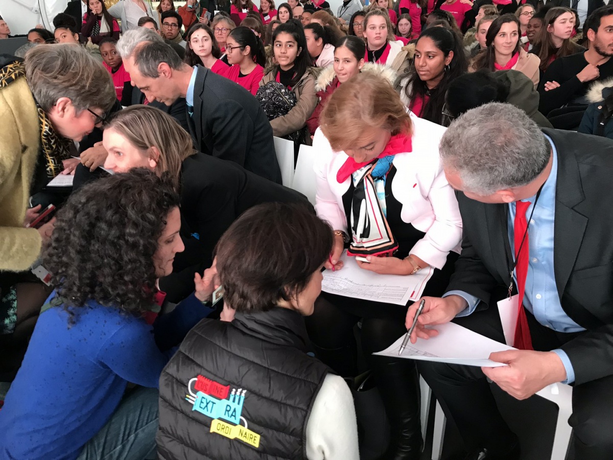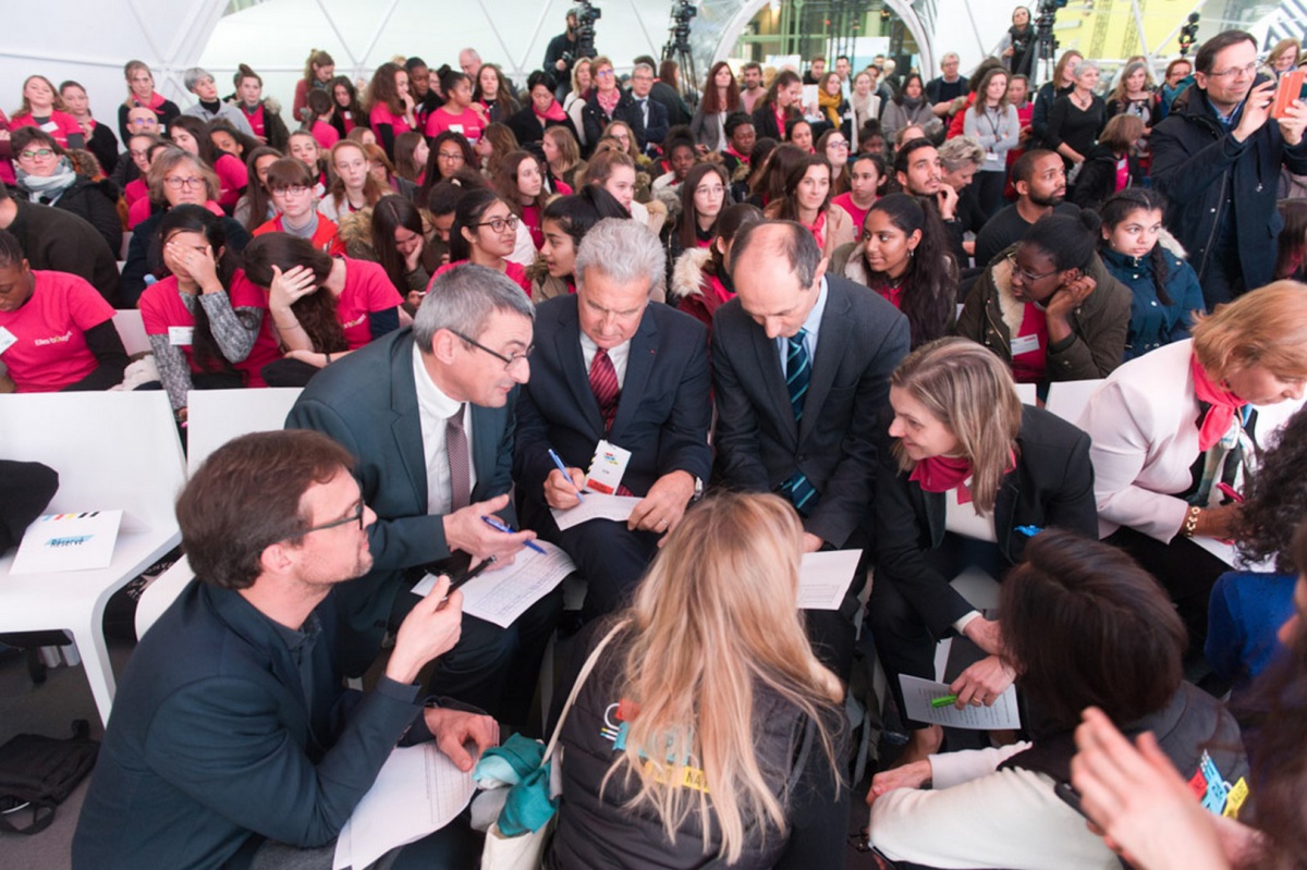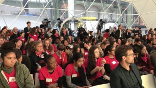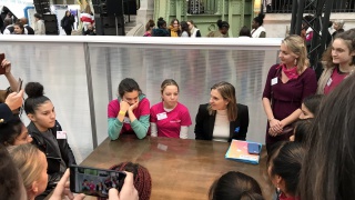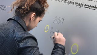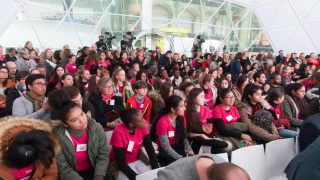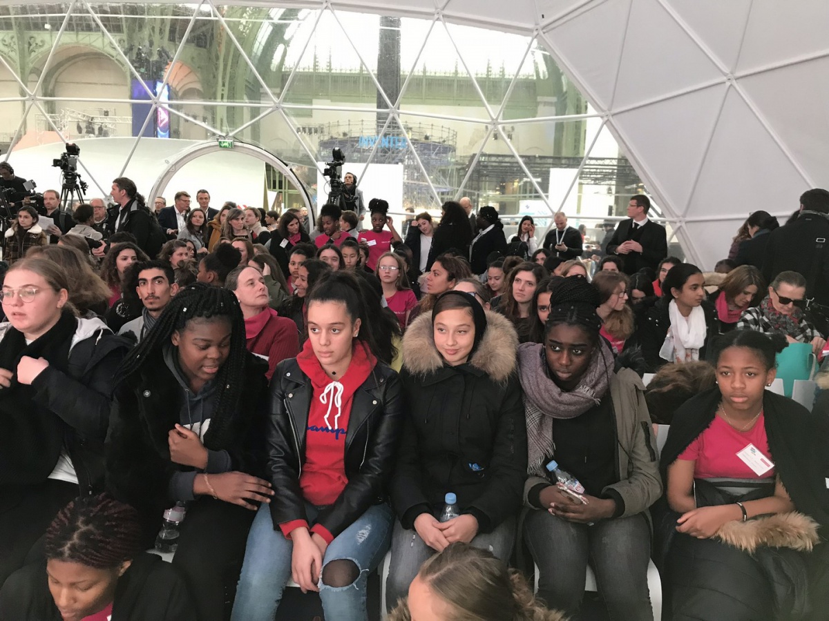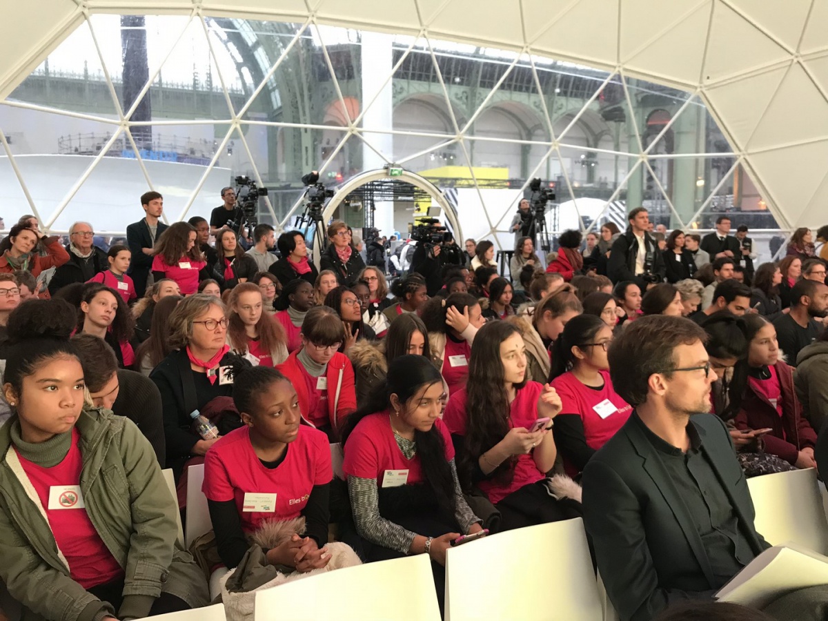Après les visites, les filles ont défendu chacune à leur tour, sur la scène du Dôme « Partager », leur photo extraordinaire, pour exprimer en quoi leur vision de l'industrie a changé grâce à leur visite de l'Usine extraordinaire.