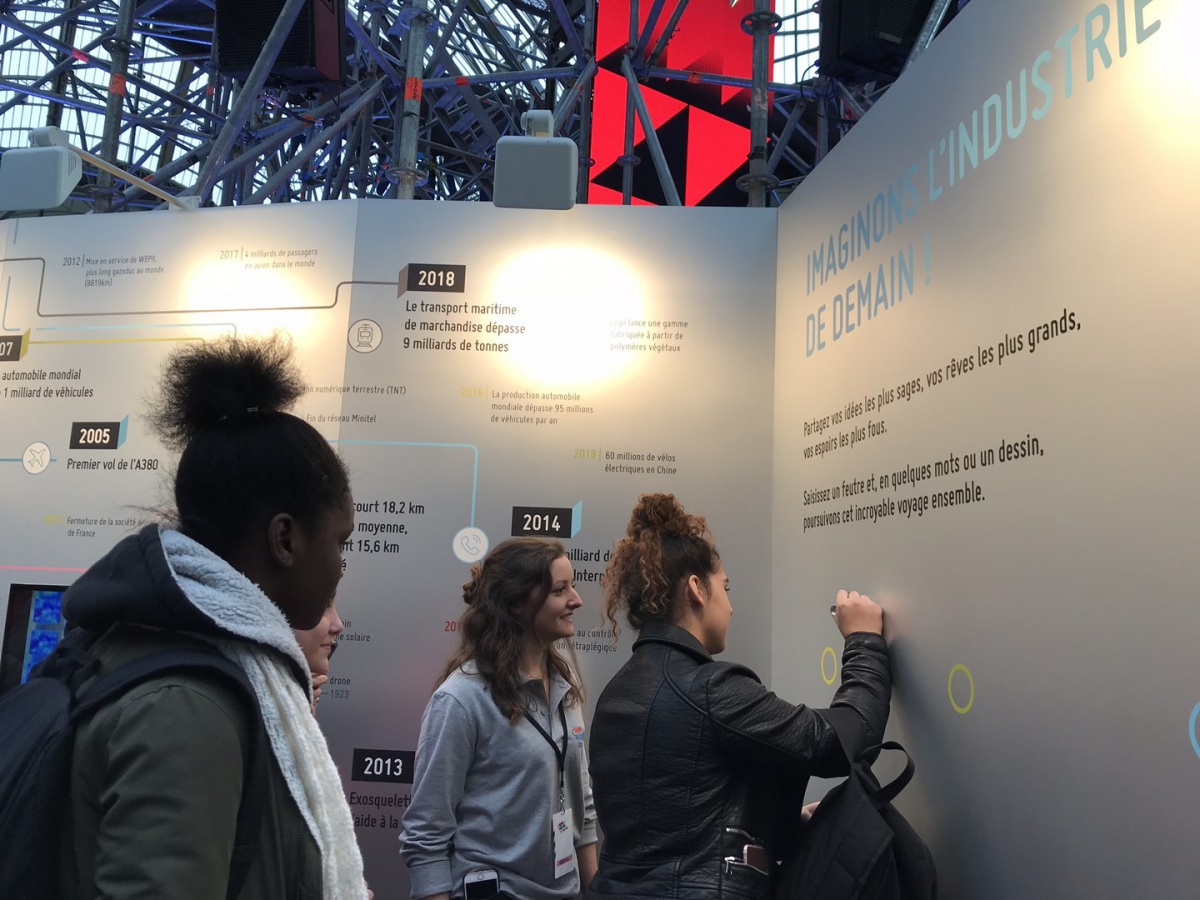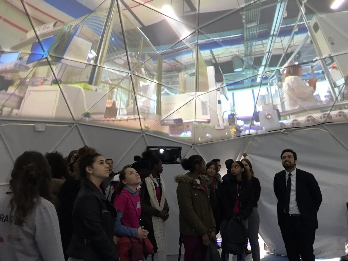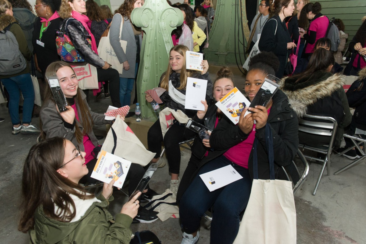 150 collégiennes, en provenance de Paris (75), de Seine-et-Marne (77) et du Val d'Oise (95), accompagnées par 50 marraines, ont pu découvrir l'Usine d'aujourd'hui, moderne, collaborative, humaine, lors d'un parcours guidé.
