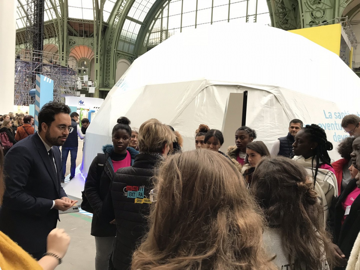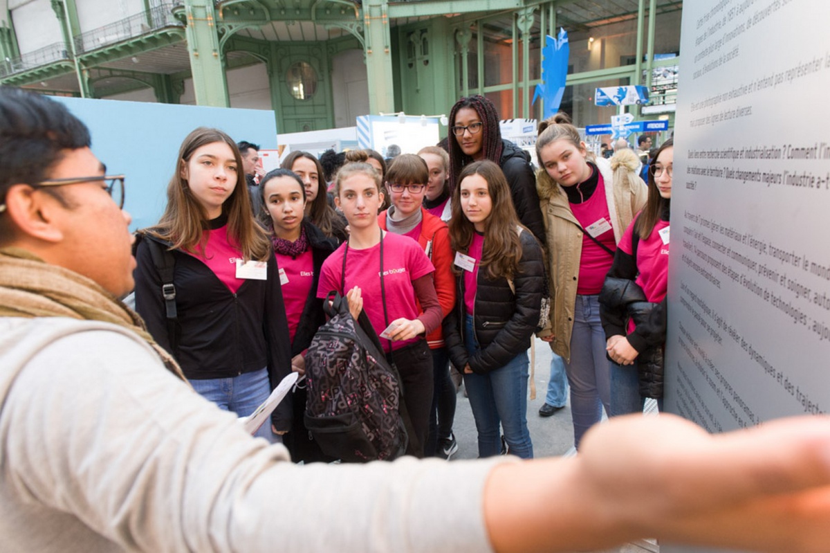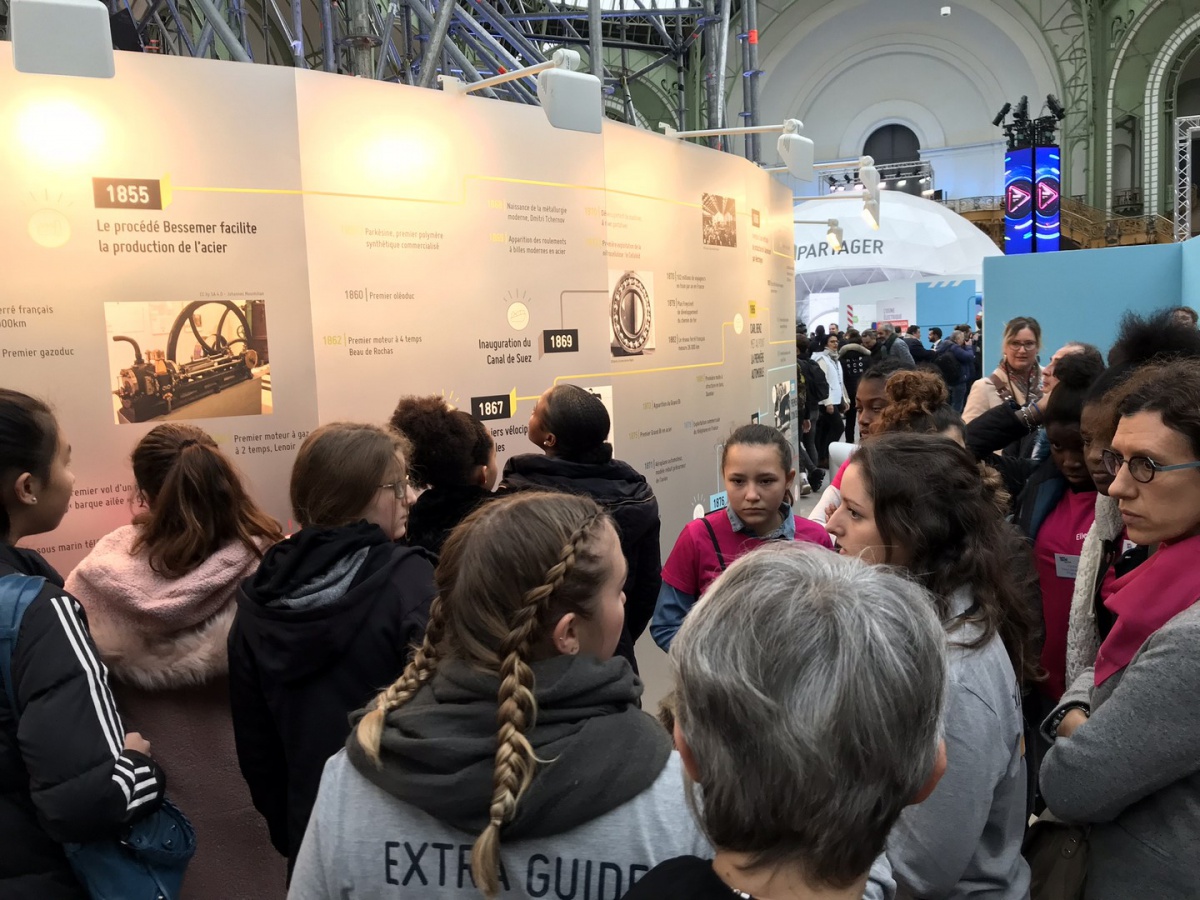 Retour sur la visite de 150 collégiennes à l'Usine Extraordinaire, guidées par 50 marraines d'entreprises partenaires, sous la majestueuse nef du Grand Palais, un événement co-organisé avec la Fédération des Industries Mécaniques (FIM), la Fabrique de l'Industrie et la Direction Générale des Entreprises (DGE).